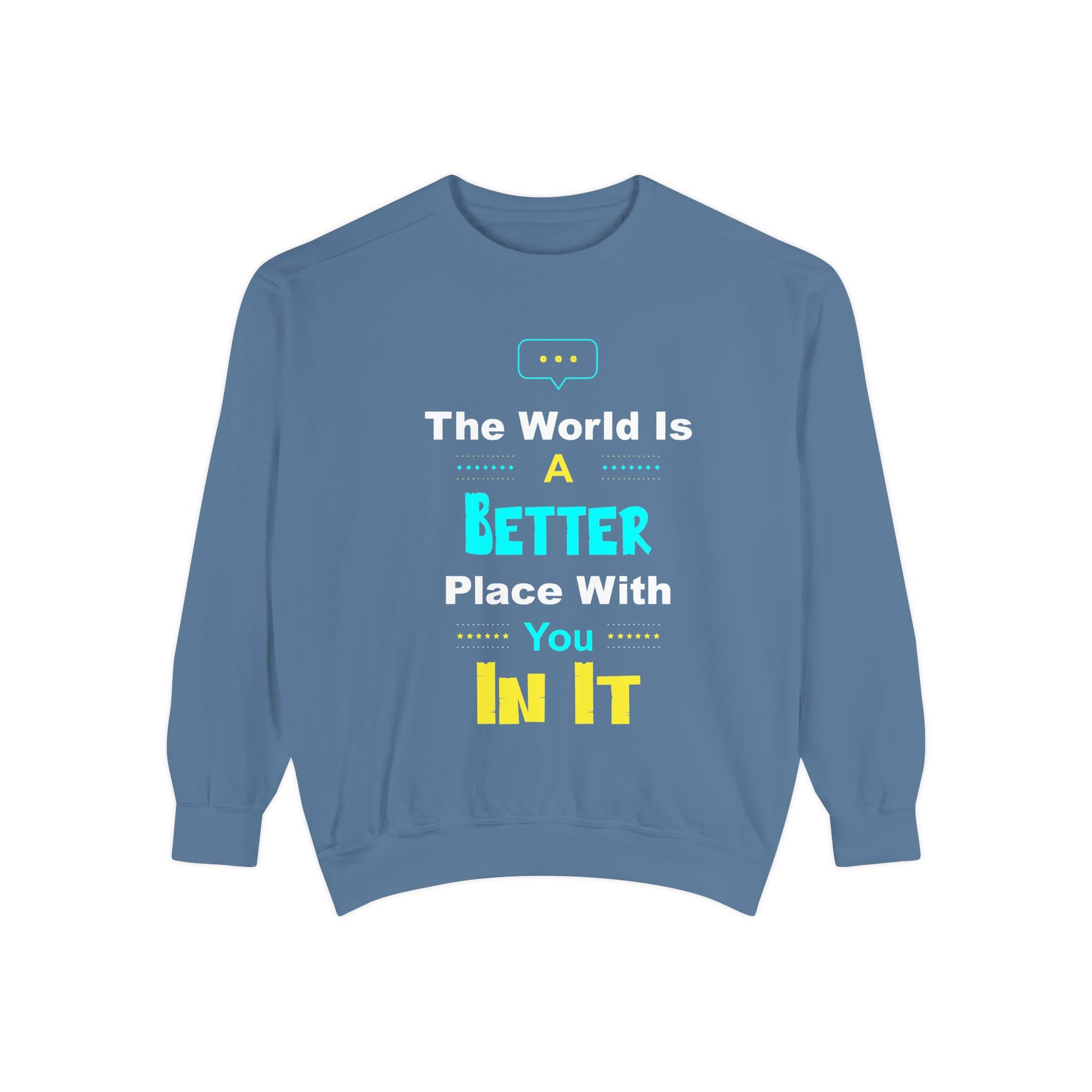 This relaxed-fit garment-dyed sweatshirt carries a quiet, encouraging message in bright, playful typography. Made from a medium-heavy 80/20 ring-spun cotton-poly blend, it feels soft against skin while holding structure for layering. Subtle design touches — a half-moon neck patch, ribbed collar/cuffs/hem, and sewn-in twill label — give it a crafted, lived-in vibe. The front and center chest areas can be embroidered for a textured, personal finish. Wear it on slow mornings, at small creative meetups, or during weekend walks when you want something comfortable that also says a little something about who you are.