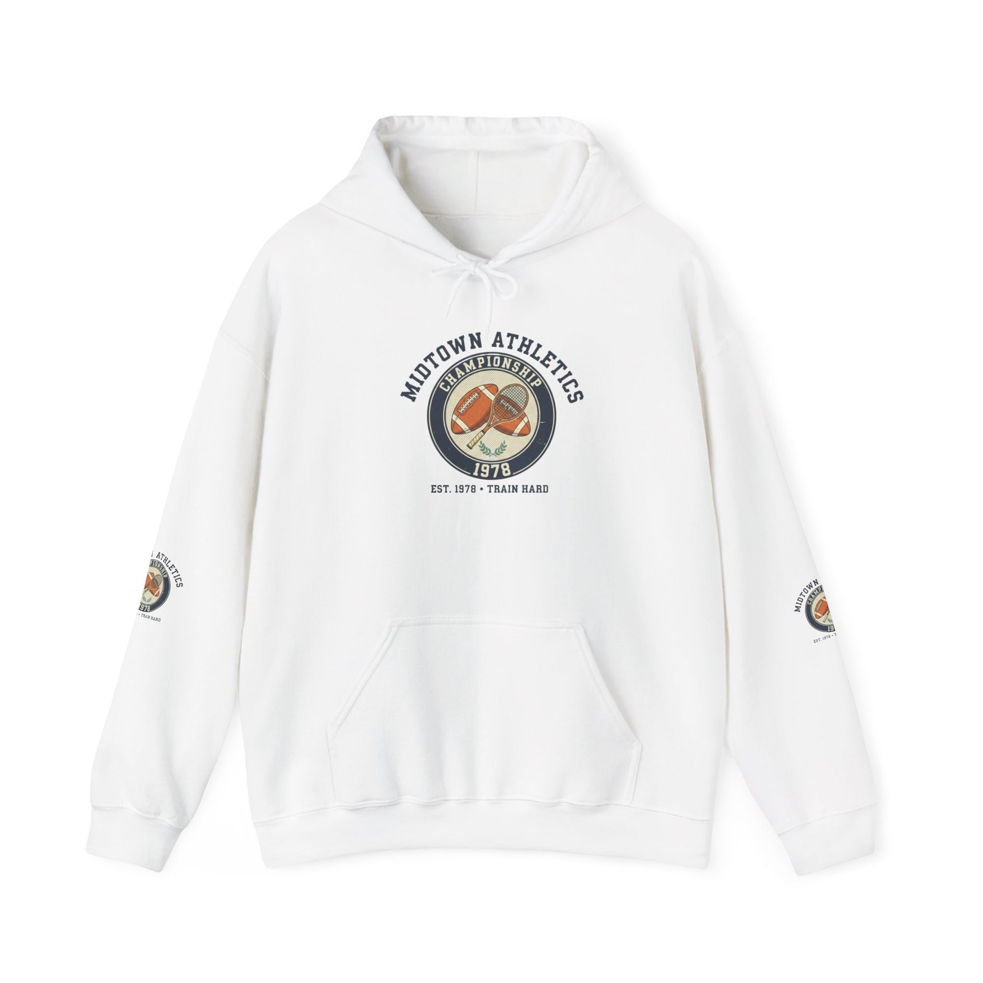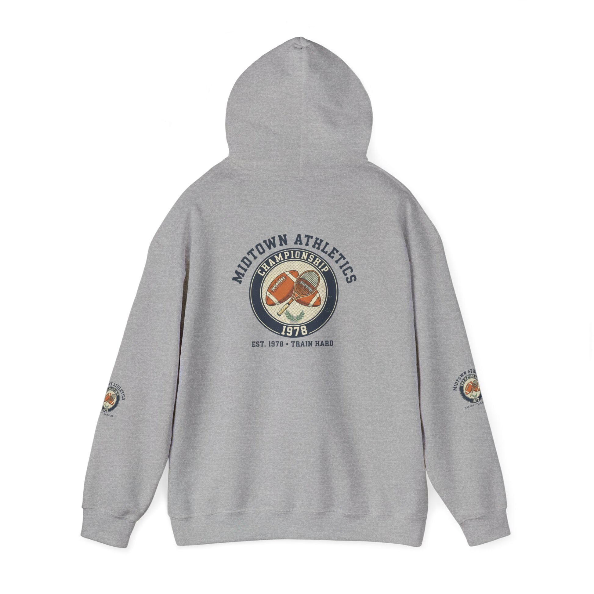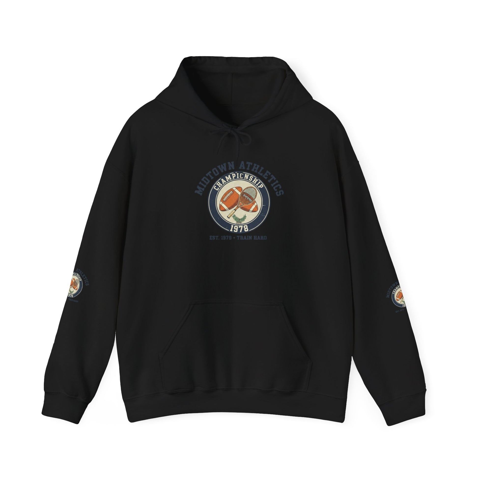 The design reads as a subtle nod to collegiate athletics and neighborhood teams. It blends muted colors and retro illustration for a relaxed look that works layered under a coat or alone with jeans. For folks who like casual, slightly nostalgic streetwear that still feels practical, this hoodie fits seamlessly into daily routines and weekend rituals.