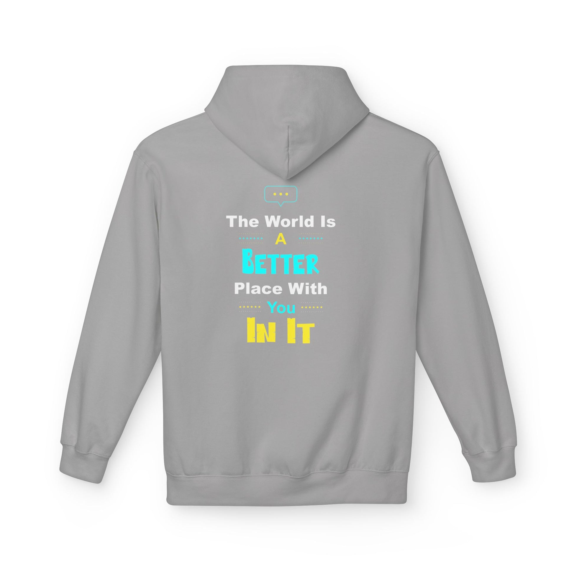Lightweight warmth with a quiet message. This midweight fleece hoodie wraps you in soft ring-spun cotton while a clean, small-front and larger-back typographic design in cheerful teal and sunny yellow reads like a private reminder to lean into growth and kindness. The dropped shoulders and classic fit create an easy, lived-in silhouette you’ll reach for on slow mornings, evening walks, or when you want something comfortable for study sessions and coffee dates. Sustainably made and ethically produced, it feels as thoughtful as the sentiment it wears.