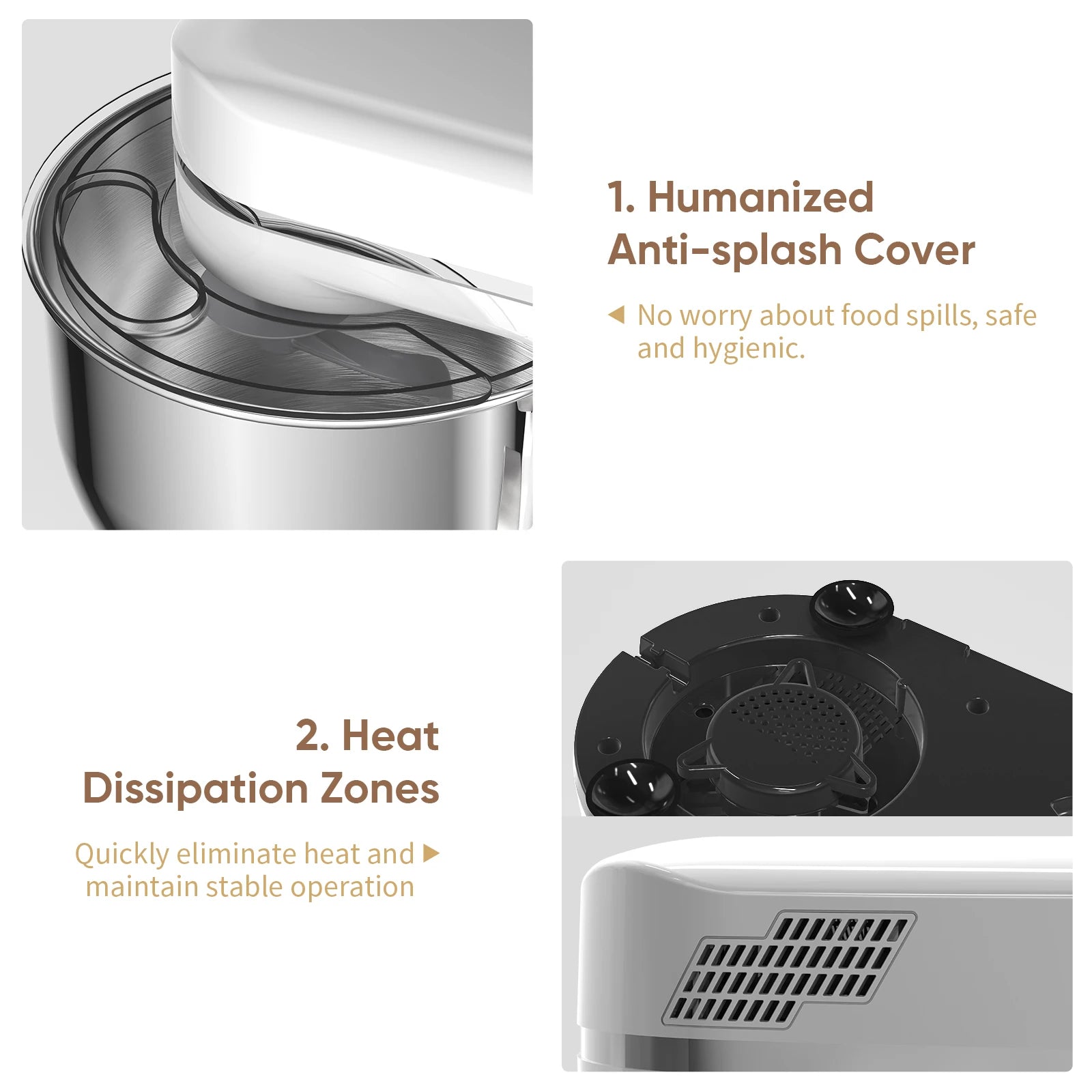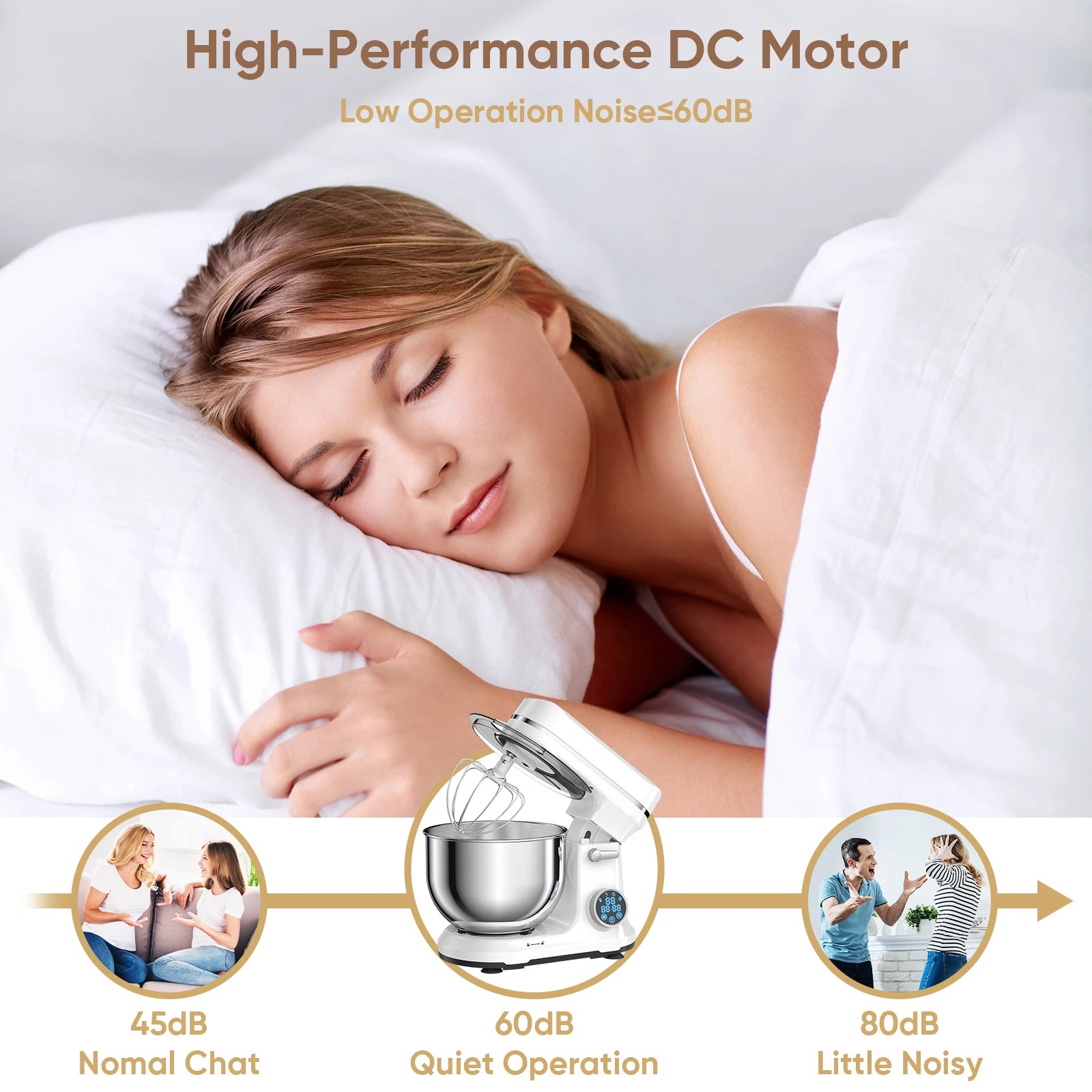 BioloMix Kitchen Food Stand Mixer, 1200W 11-Speeds DC Motor, Digital OLED Screen, Electric Food Mixer with Dough Hook, Whisk