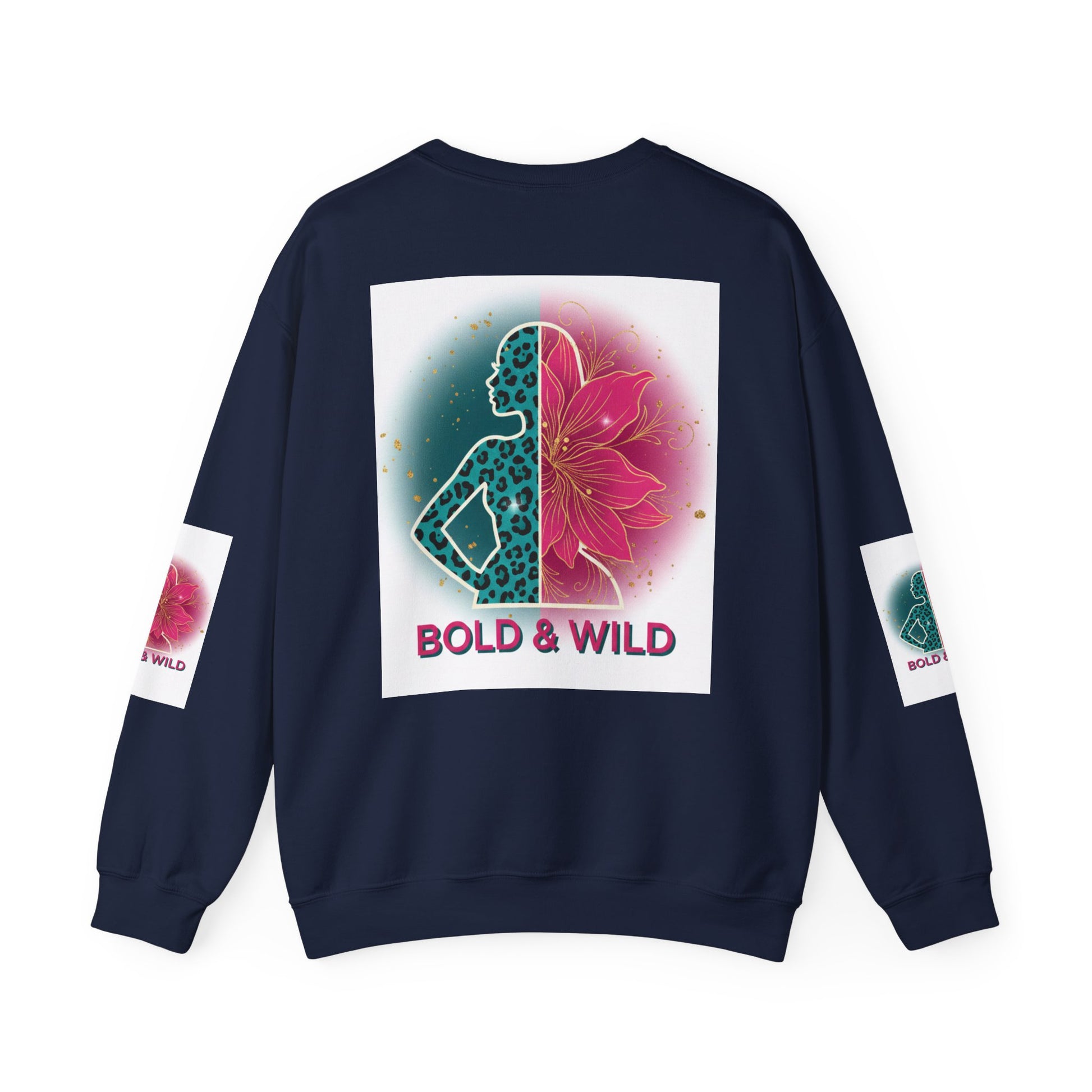 This cozy crewneck brings a confident, expressive vibe to everyday wear. Soft yet substantial, the sweatshirt pairs a structured silhouette with bold artwork: a split-circle design showing a leopard-print female profile against a blooming magenta flower, anchored by the phrase “BOLD & WILD.” The graphic sits large on the back and appears on the front chest and both wrists for a cohesive, statement look. Lightly brushed inside, it feels warm against the skin while the ribbed collar and double-needle stitching keep the shape through repeated wear. Ethically sourced cotton and OEKO‑TEX dyes mean you can wear it with quiet assurance—color and quality that last. Choose embroidery placement if you want a textured accent on the chest or wrists.