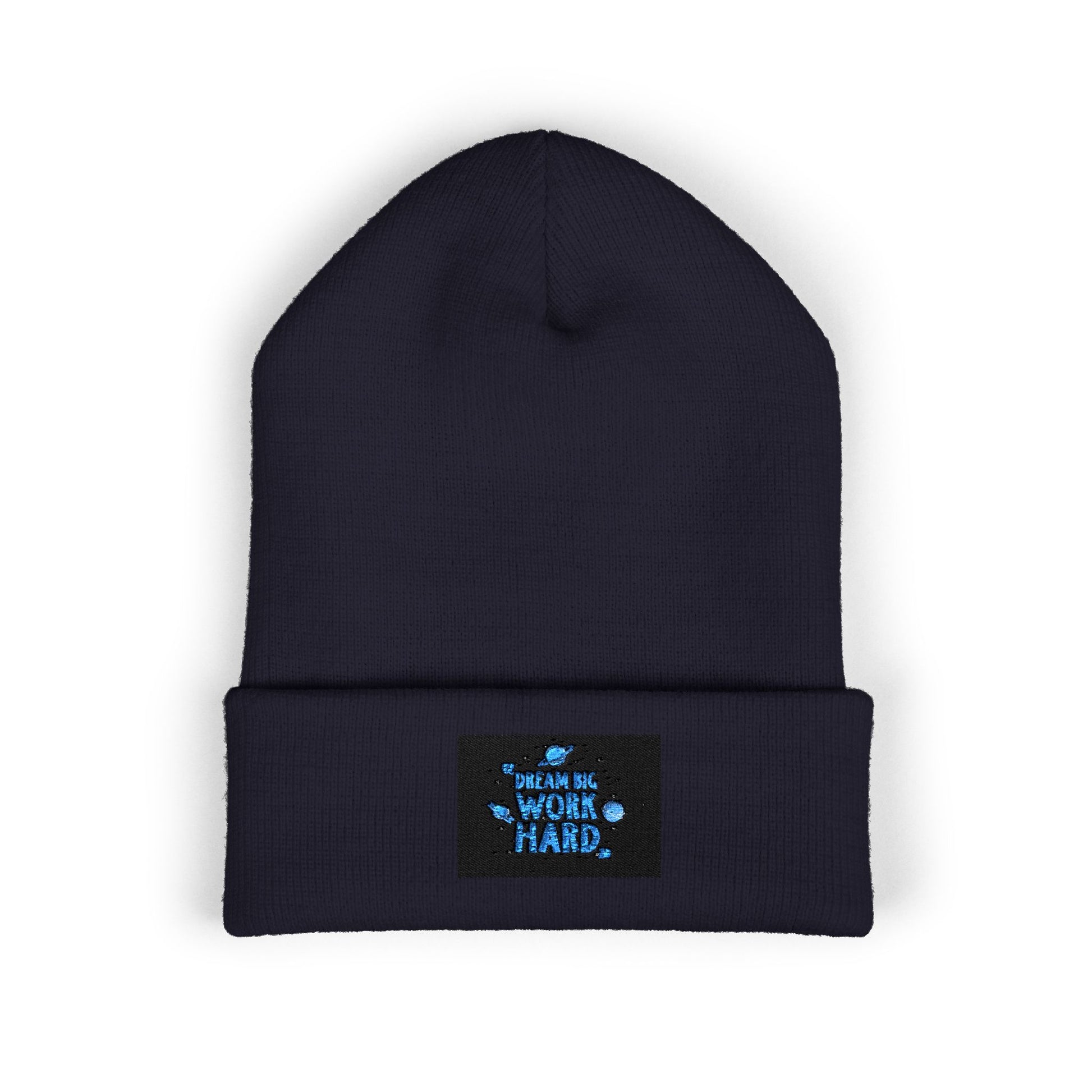 Classic Cuffed Beanie — Embroidered 'Never Stop' Blue Patch Winter Hat