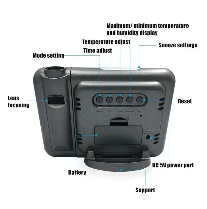 Color LCD Digital Projection Alarm Clock Temperature Thermometer Humidity Hygrometer Desk LED Time Projector Calendar