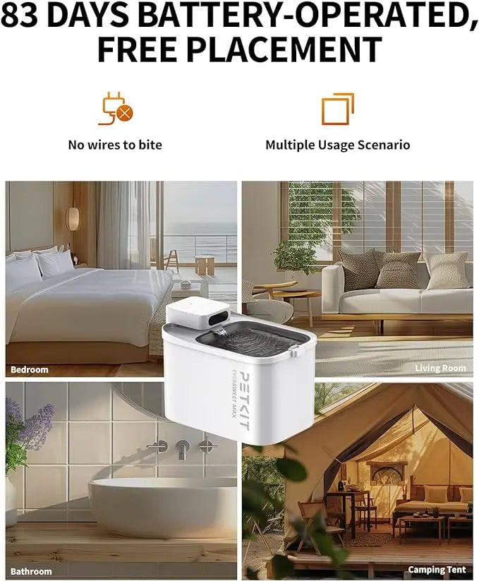 Cordless Cat Water Fountain, 105 Fl Oz/3L Pet Water Fountain Automatic Cat Water Dispenser
