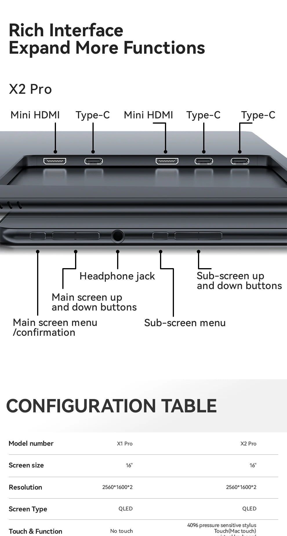 EHOMEWEI Dual Screen Portable Monitor X Series Drive-free Phone-touch FHD 2K 15.6“ 16“ For Laptop Windows Macbook
