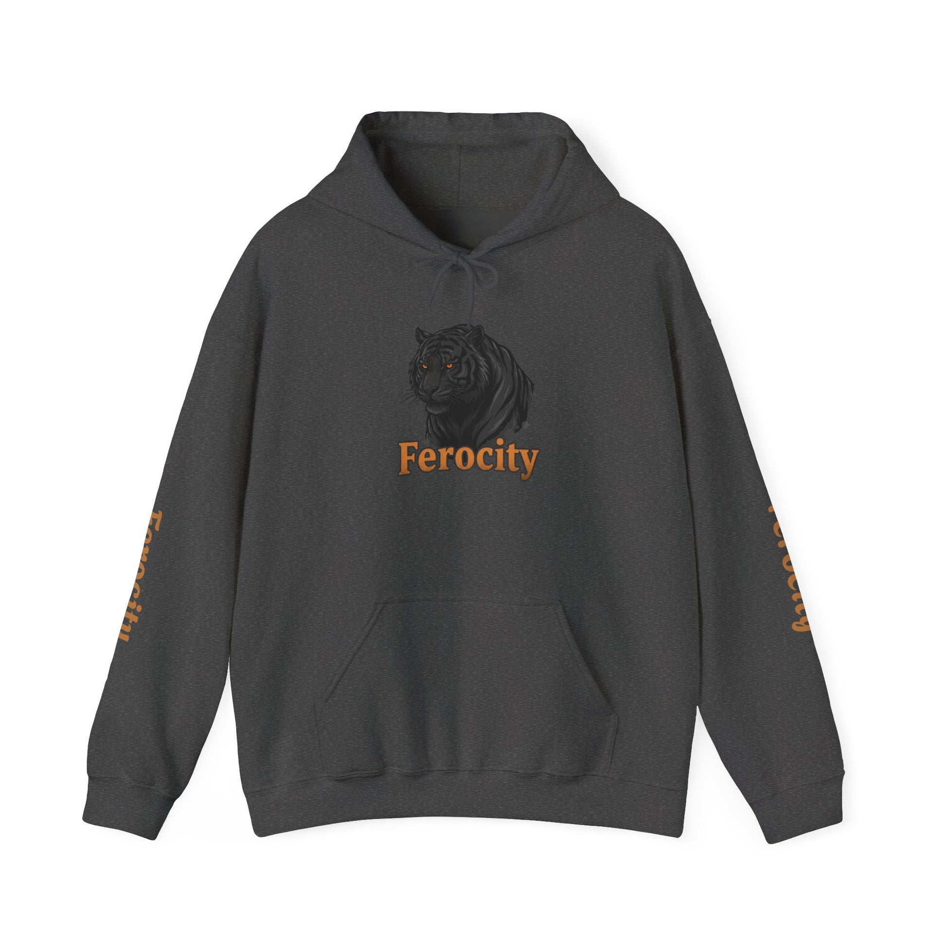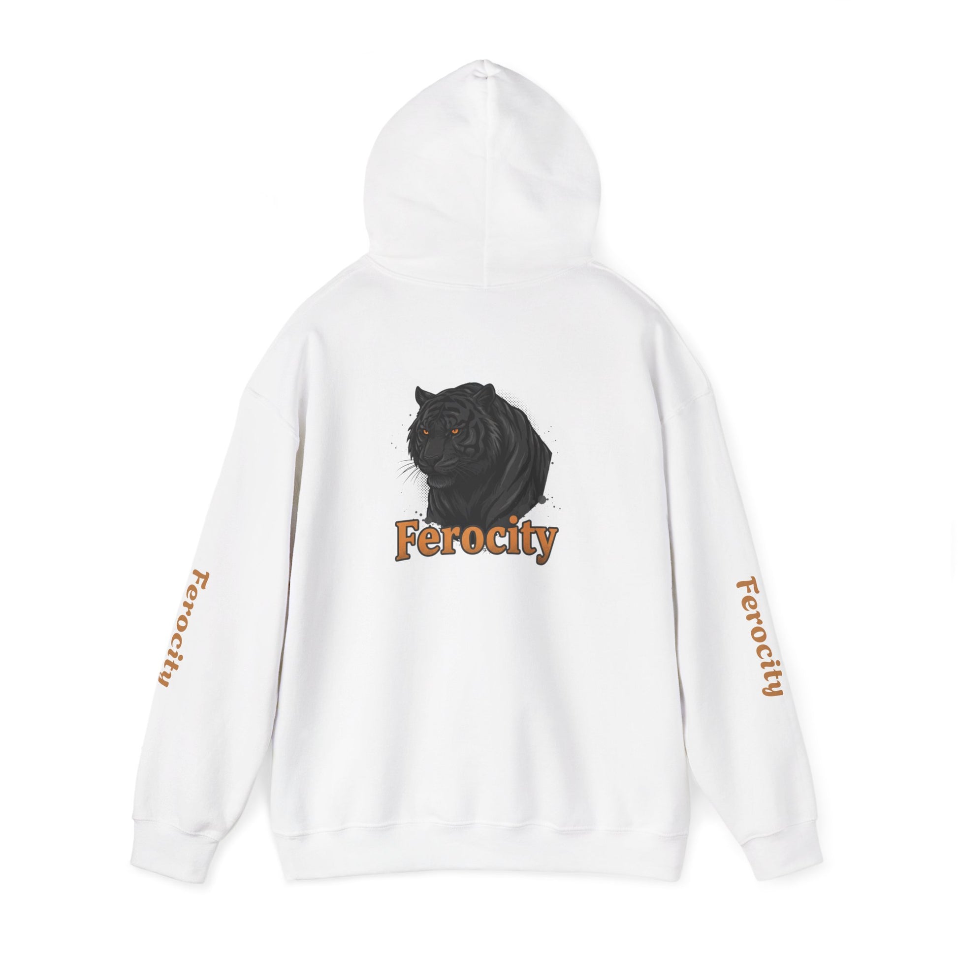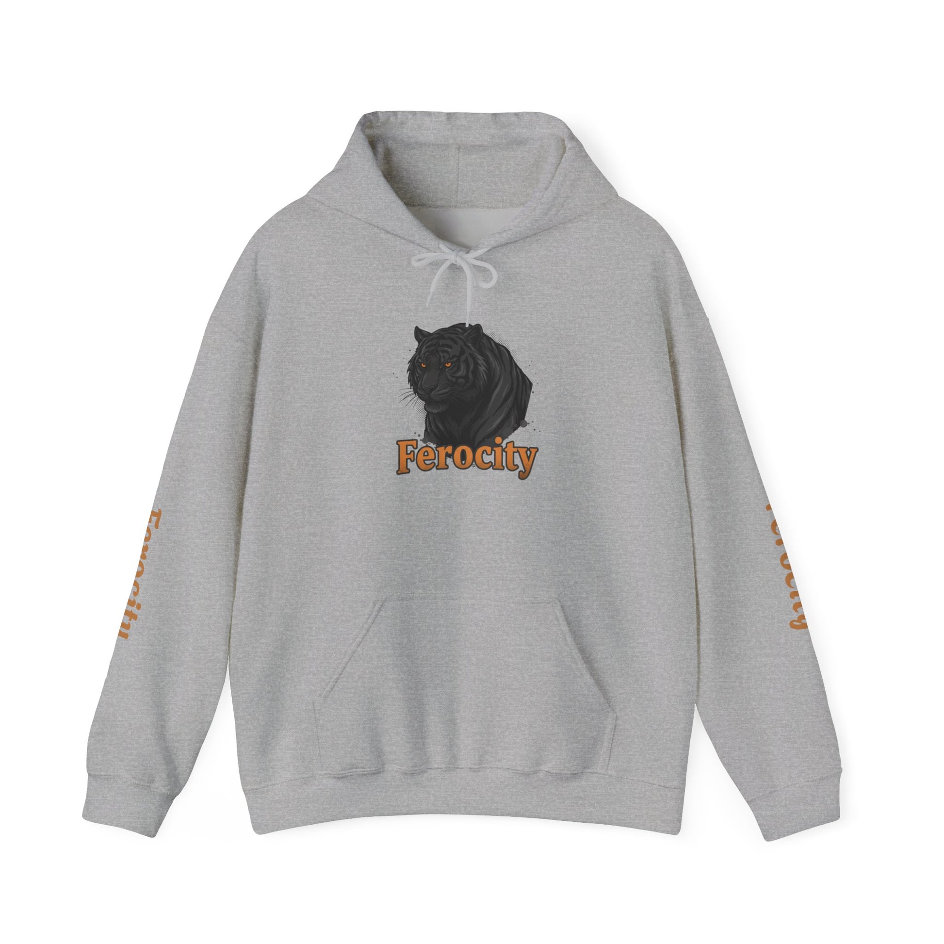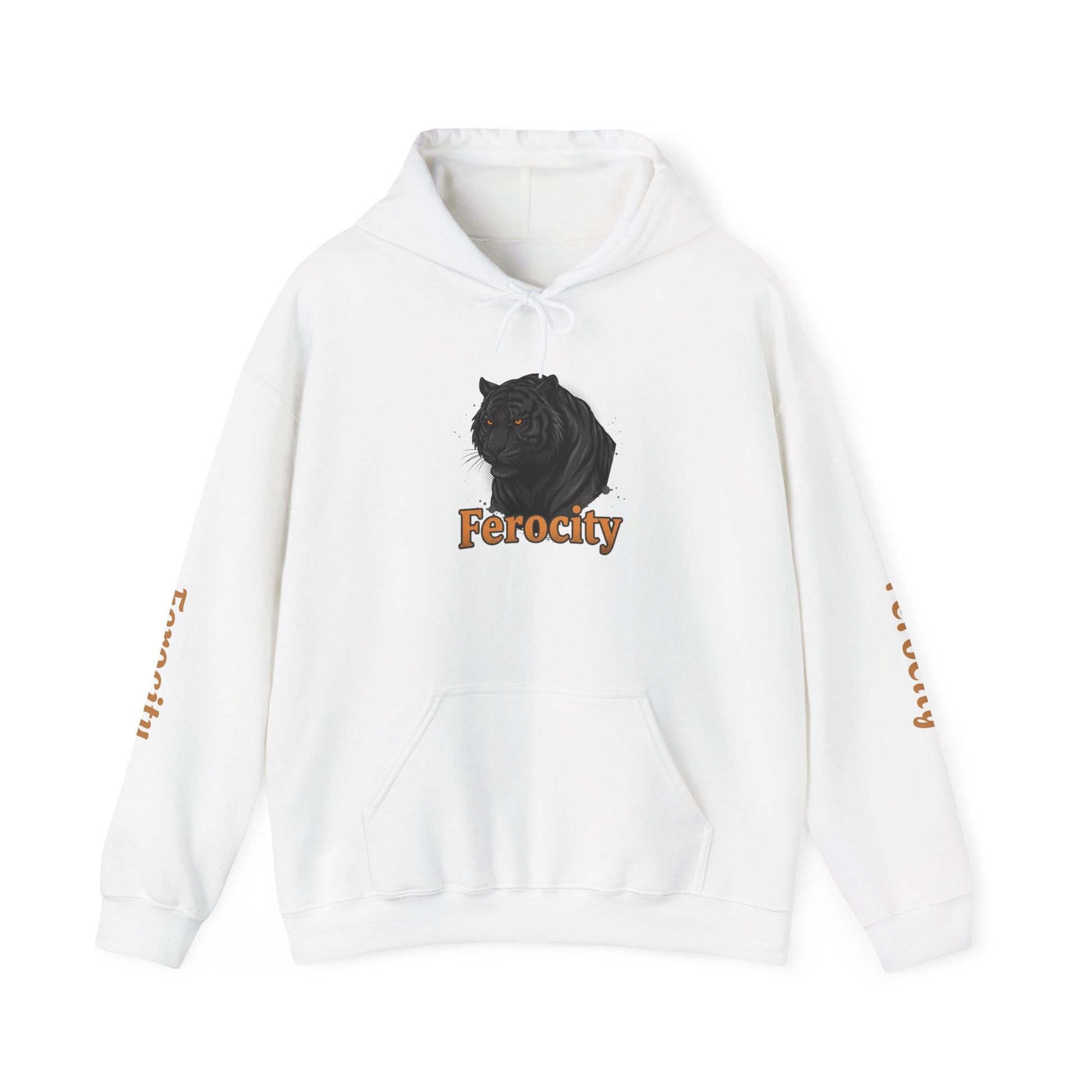 A cozy, statement hoodie that pairs soft warmth with bold attitude. The front and back showcase a detailed black panther head illustration above the word “Ferocity” in a warm, textured type — a quiet roar for anyone who wants their outerwear to reflect strength without shouting. Subtle sleeve prints repeat the word for a balanced, street-ready look. Made from a soft cotton/poly blend with a double-lined hood and roomy kangaroo pocket, this hoodie wears like a trusted companion on cool mornings, late-night walks, and low-key meetups. It’s made to be lived in: comfortable, durable, and ethically sourced materials meet standout graphics that hold up wash after wash.