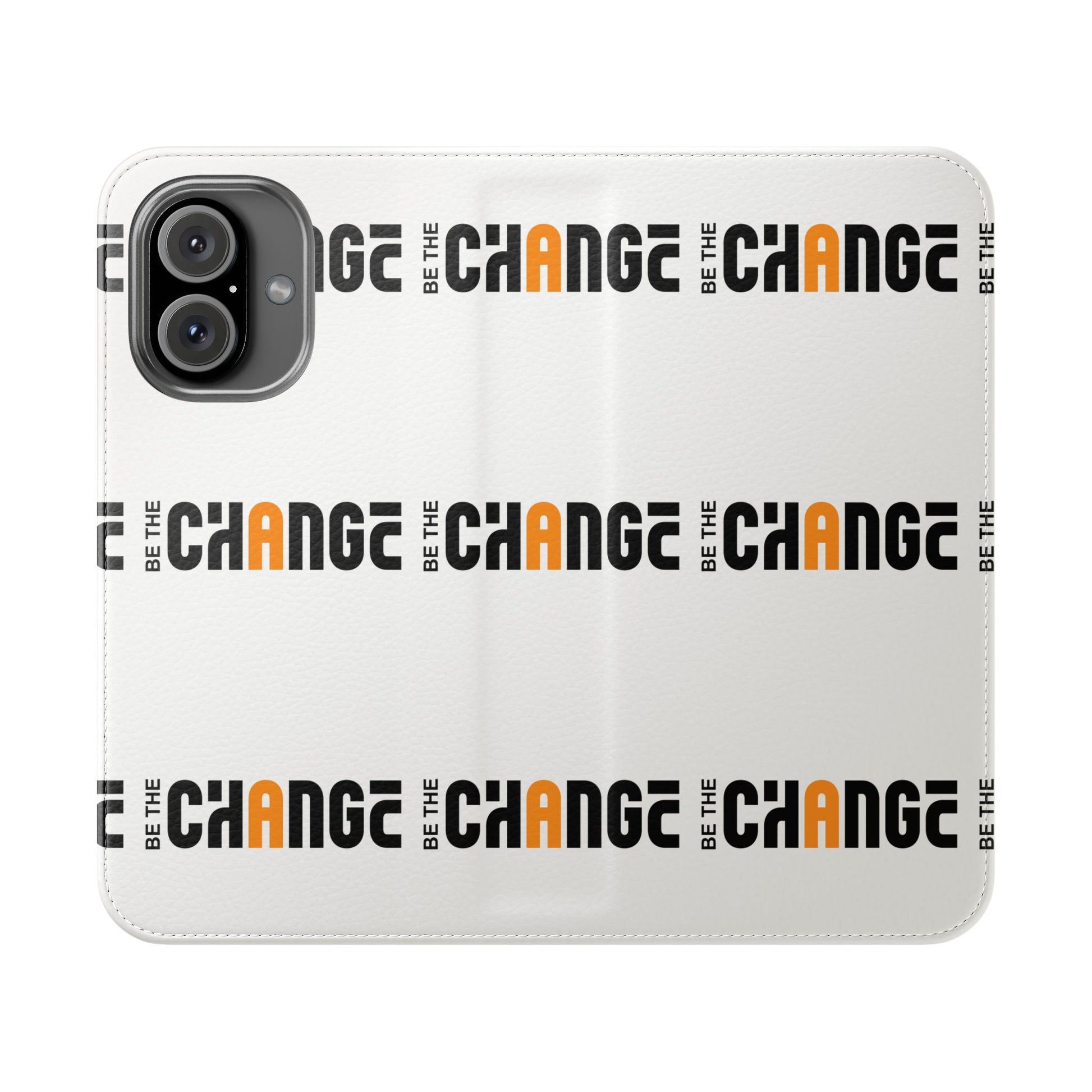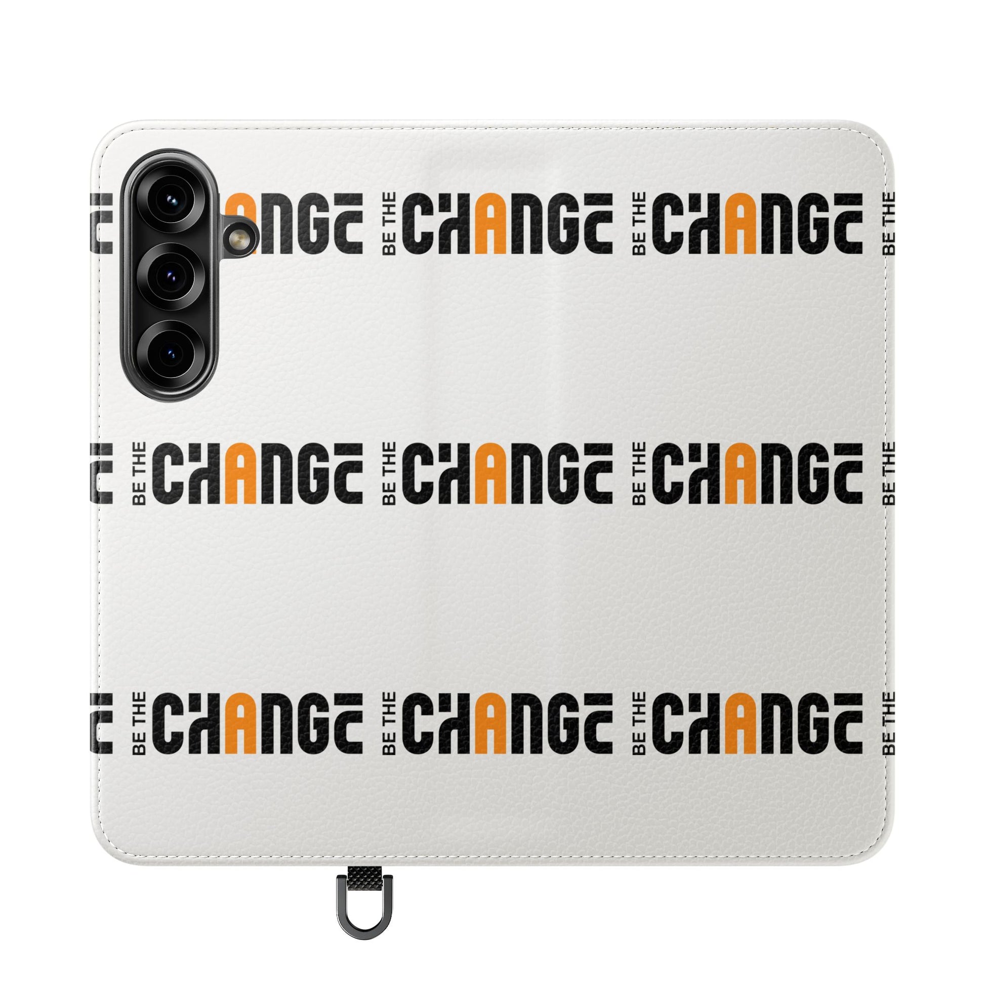 This flip case blends mindful design with everyday practicality. The vegan faux leather cover feels soft to the touch and shows a repeating “Be the Change” motif that reads like a quiet reminder each time you open your phone. Inside, stitched card pockets keep a few essentials close, while a durable polycarbonate inner shell holds your device securely. A built-in stand unfolds for hands-free videos or calls, and clear port cutouts keep charging and headphones effortless. For S24 and S25 owners, a D-ring lets you add a wrist or neck strap when you’re on the move. Finished in South Korea with care instructions included, it’s a thoughtful piece for people who want function with a subtle message.