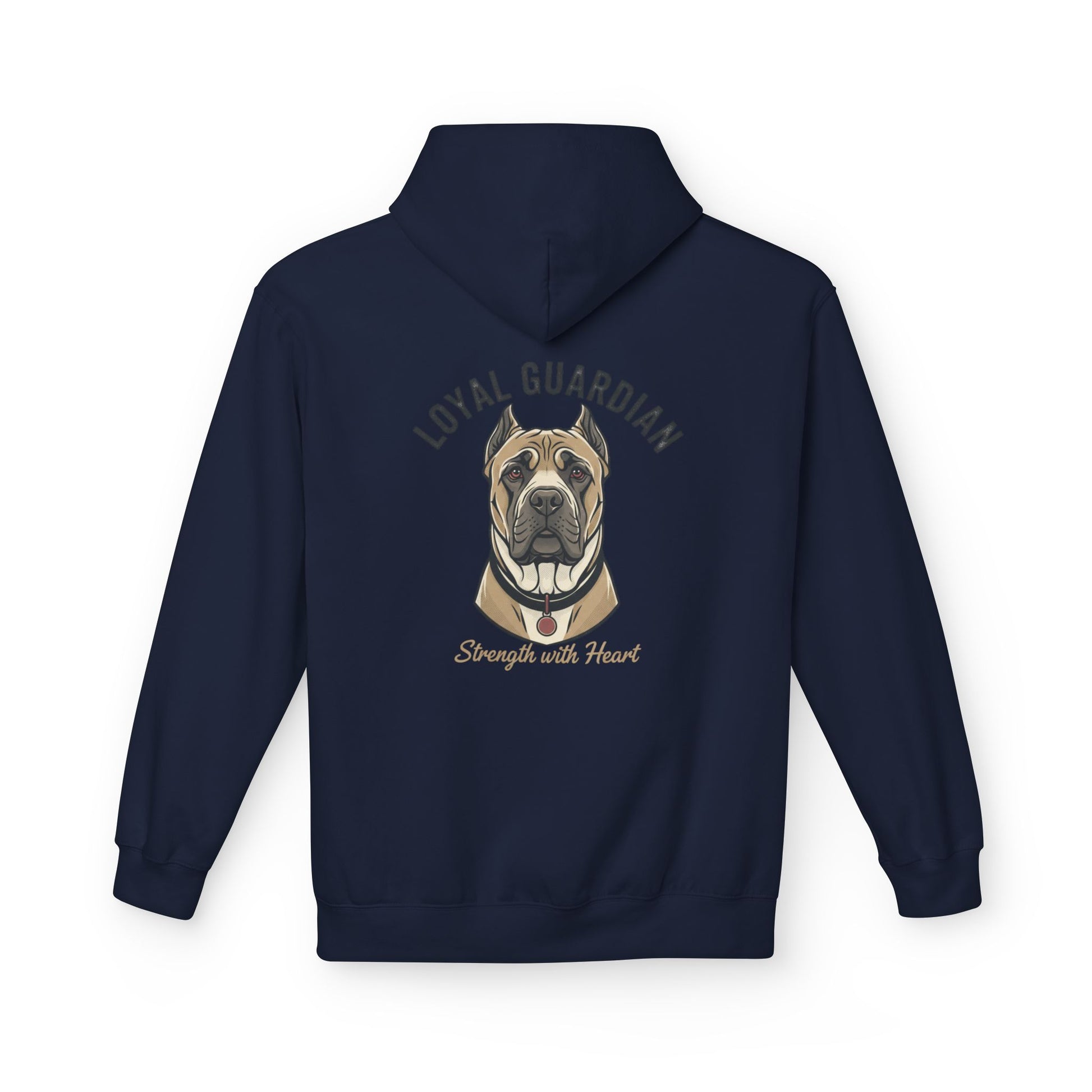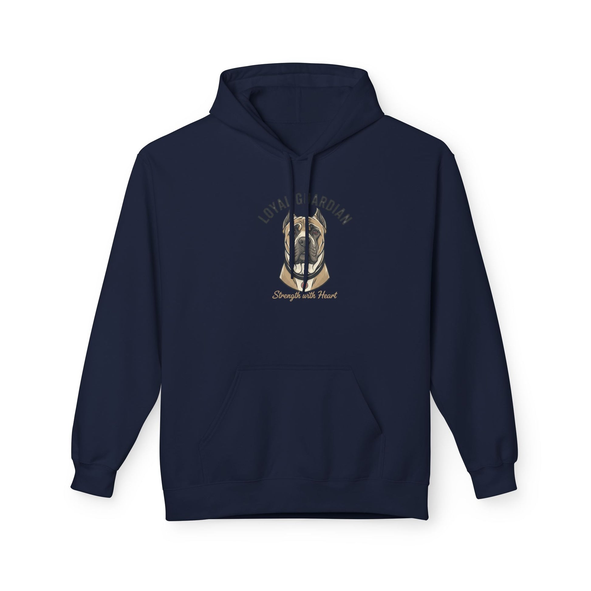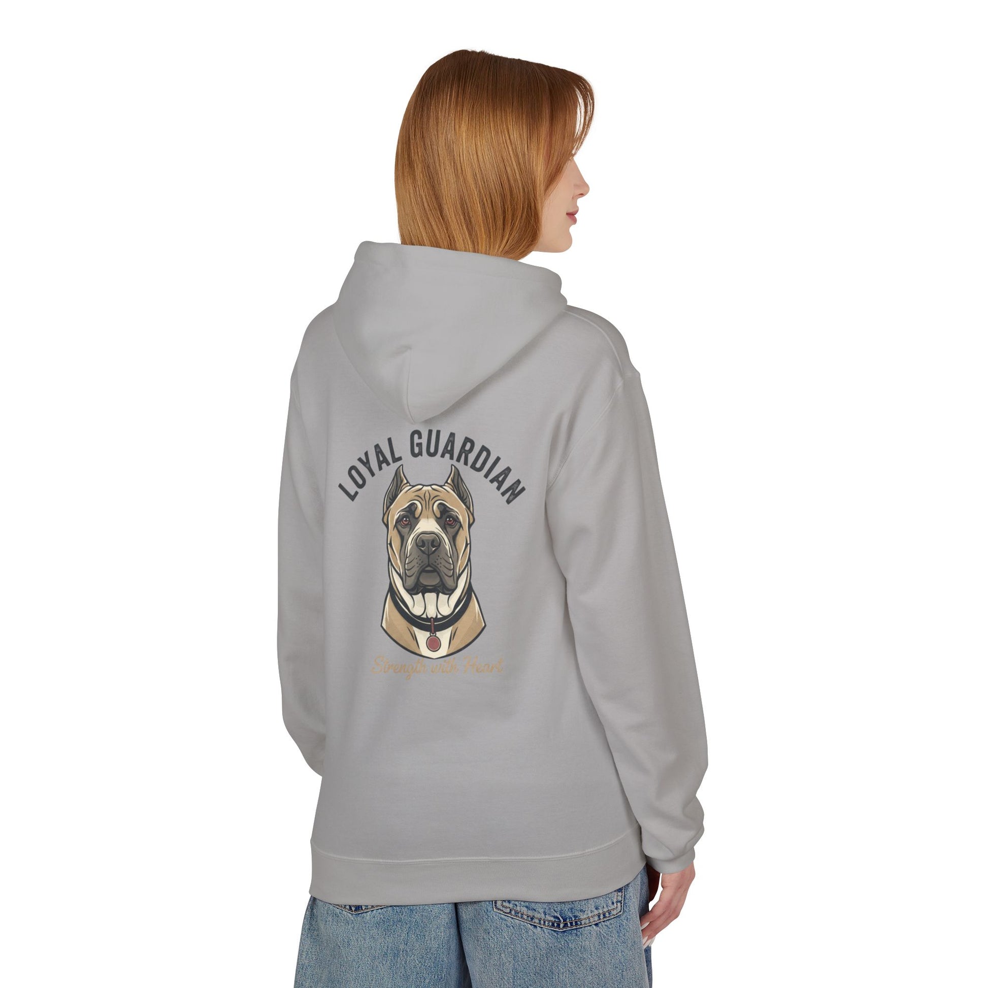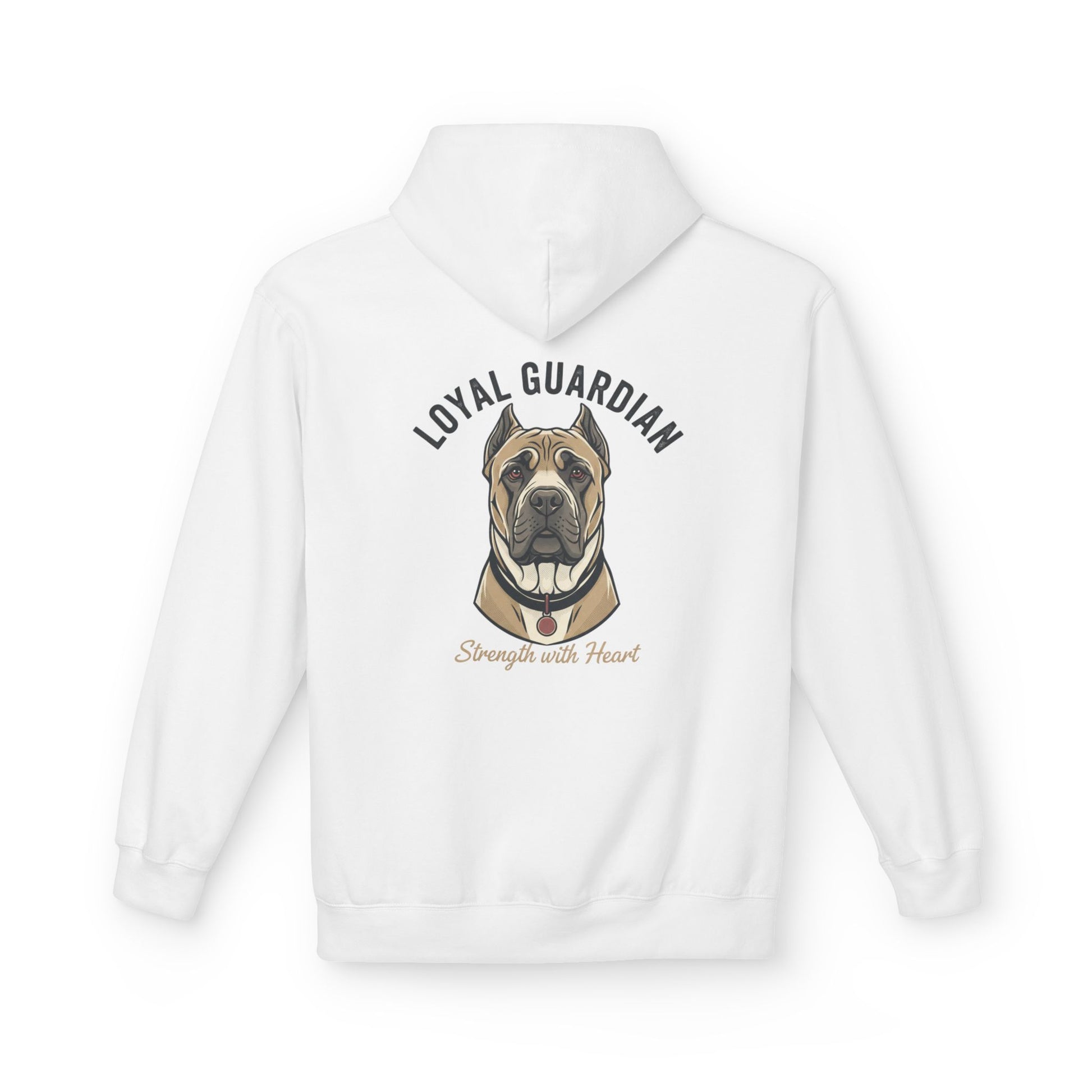Warm, sturdy, and quietly bold — this midweight fleece hoodie carries a hand-drawn portrait of a devoted mastiff with the words “LOYAL GUARDIAN” arched above and “Strength with Heart” below. The roomy pouch pocket and dropped shoulders give it a lived-in comfort that invites slow mornings with your dog, evening walks, or relaxed weekends on the porch. The soft cotton face and substantial 8.4 oz fabric keep the print crisp while the two-piece lined hood adds extra warmth for blustery days. Thoughtfully made in OEKO-TEX and socially certified facilities, this hoodie feels as responsible as it does comforting — for people who value resilience, quiet protection, and the steady company of a loyal canine.