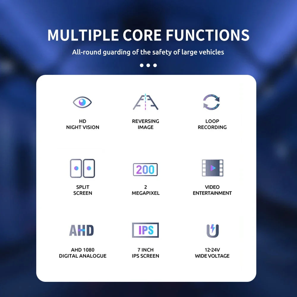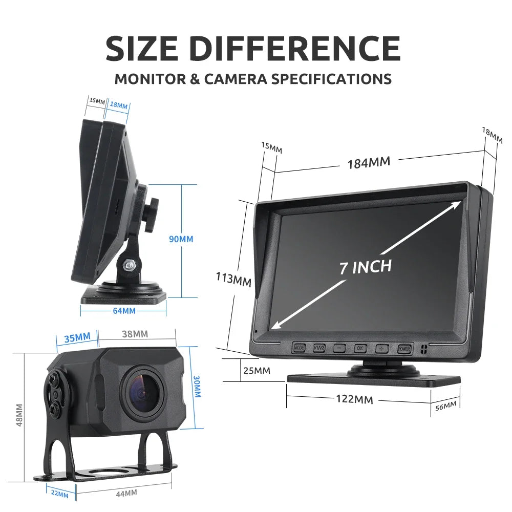MJDOUD 7 inch Truck Car Monitor 2CH DVR Video 1920*1080p IPS Screen Recorder for Bus truck Reverse Backup Vehicle Camera 12-24V