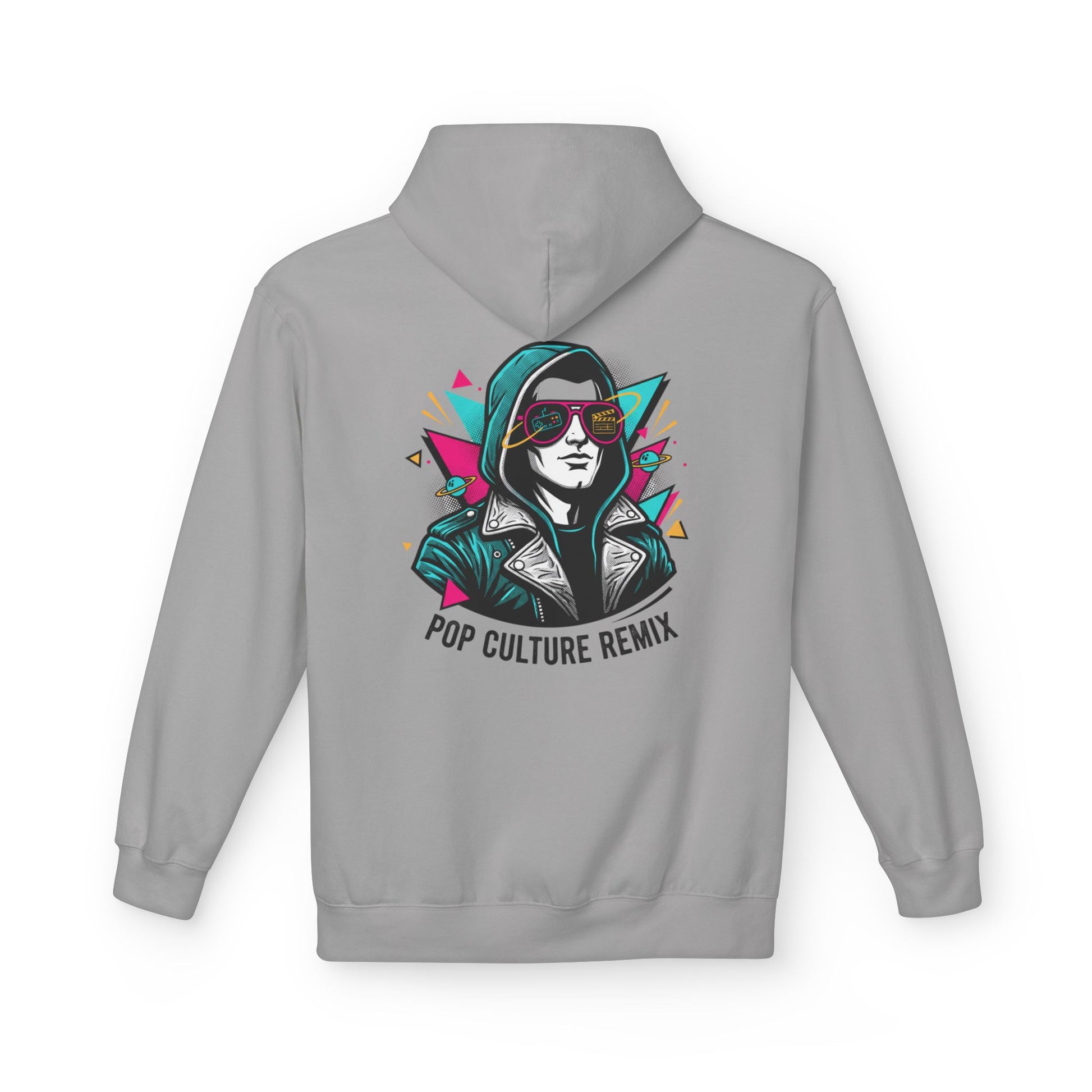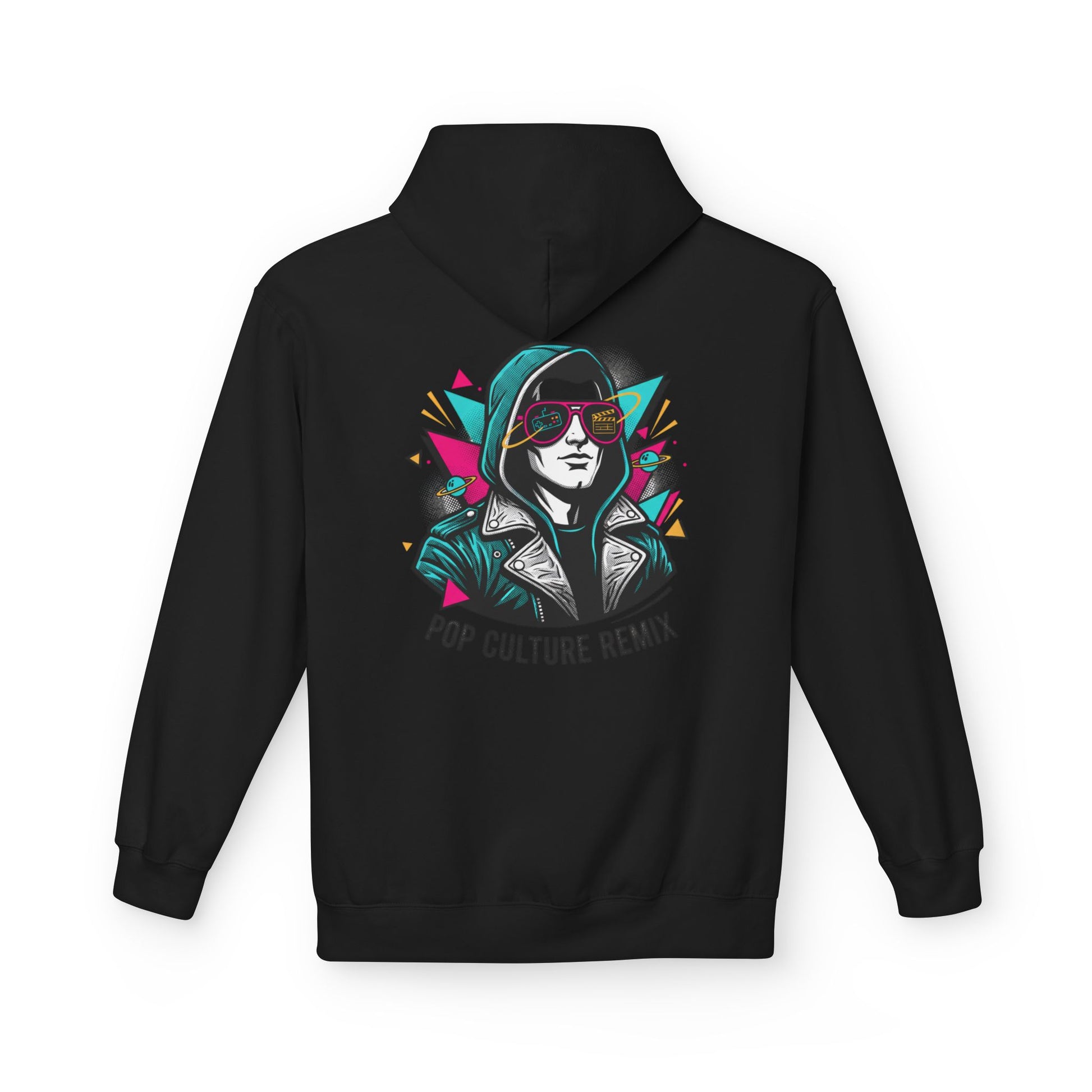 This midweight hoodie brings a splash of streetwise energy to quiet mornings and late-night meetups. The illustrated remix portrait — neon accents, geometric shards, and a leather-jacket vibe — reads like a poster from an independent zine. It sits comfortably over a tee or layered under a coat, the dropped shoulders and roomy pouch pocket making it feel lived-in from day one. Wear it to art shows, record-shopping runs, or when you want your look to say ‘I collect stories, not trends.’ Conscious manufacturing and OEKO-TEX certification mean the piece aligns with values as much as style.
