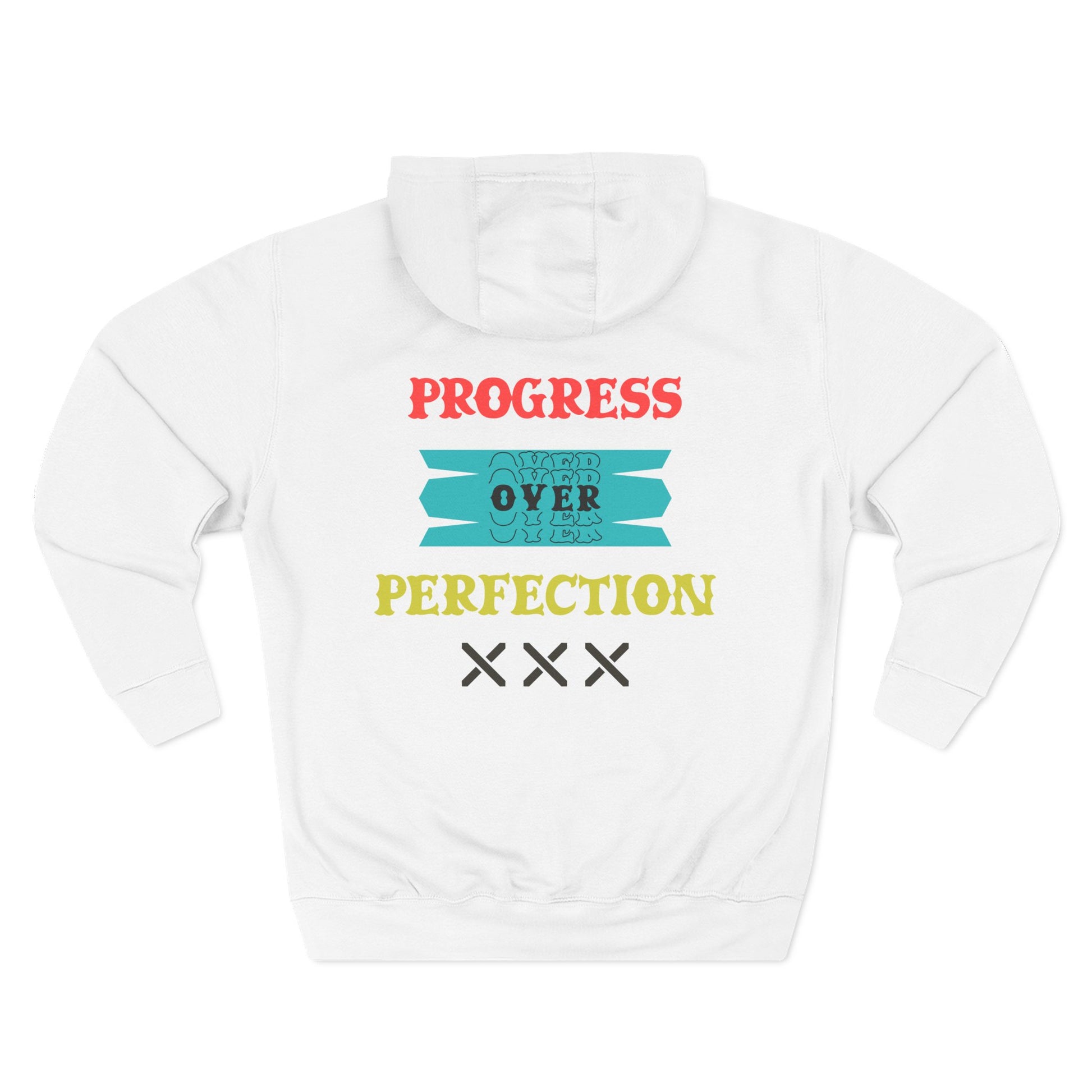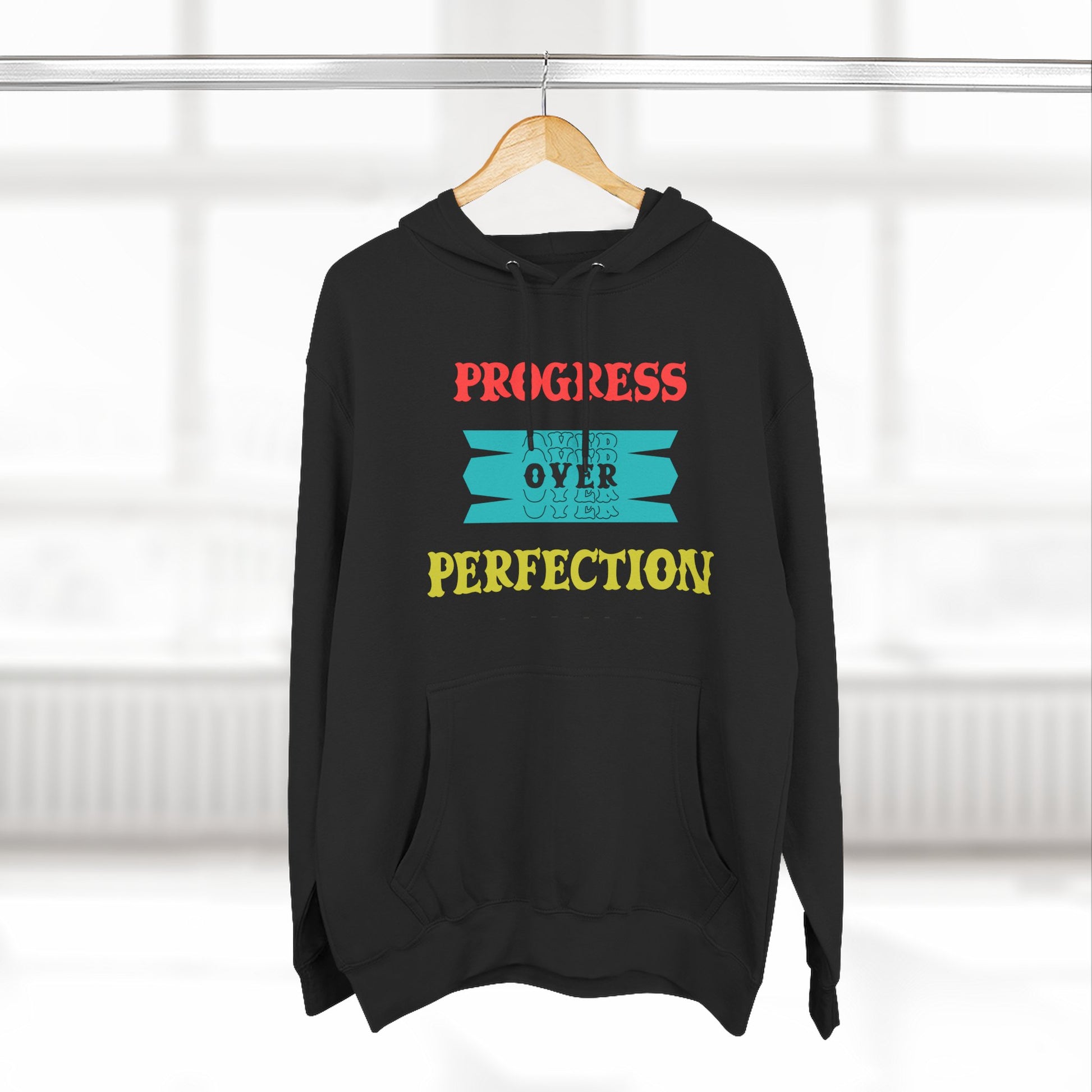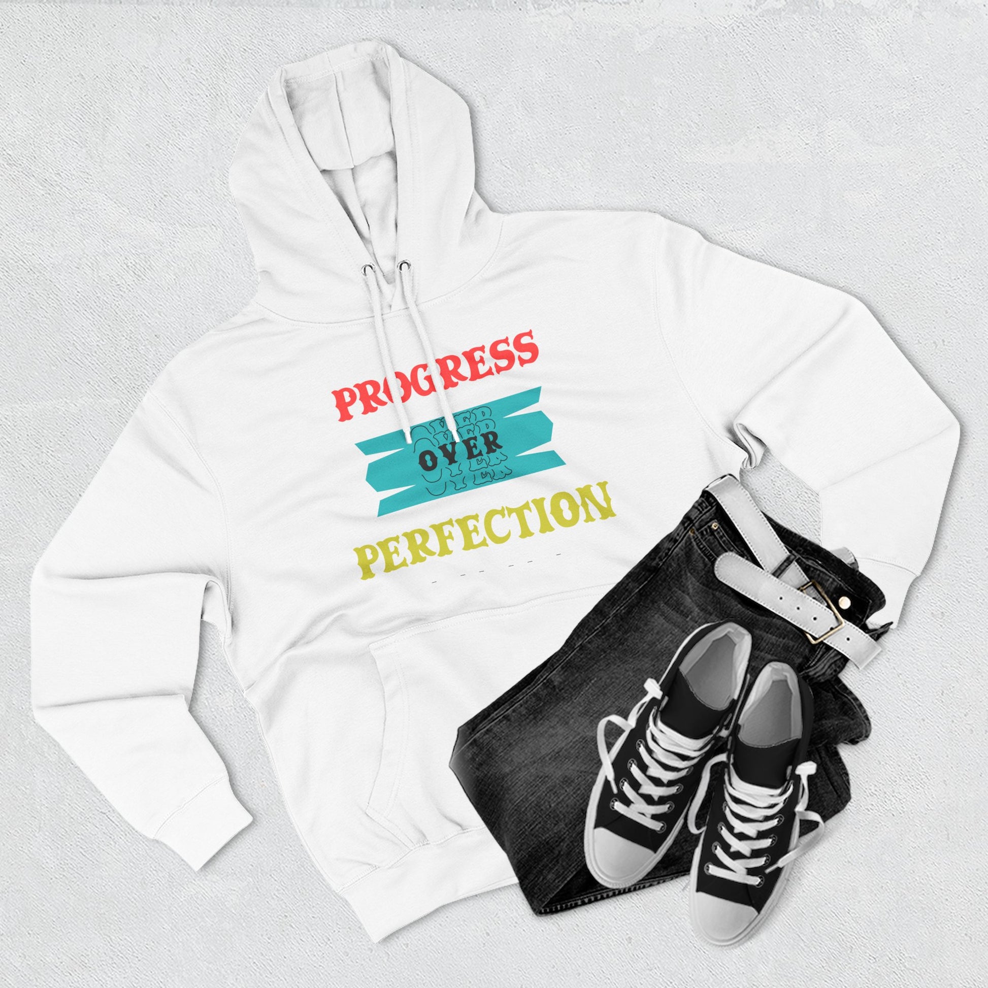 A cozy, three-panel fleece hoodie that reads “Progress Over Perfection” in bright, hand-painted lettering. The mid-weight fleece feels soft against skin and holds shape through wash and wear, while a roomy kangaroo pocket and adjustable hood add everyday comfort. Subtle embroidered options on the chest let you add a small, textured detail, while the vibrant front-and-back print makes this sweatshirt a wearable reminder to keep moving forward. It settles into your routines — morning walks, creative sessions, or coffee-shop afternoons — and wears like a quiet encouragement when you need it most.