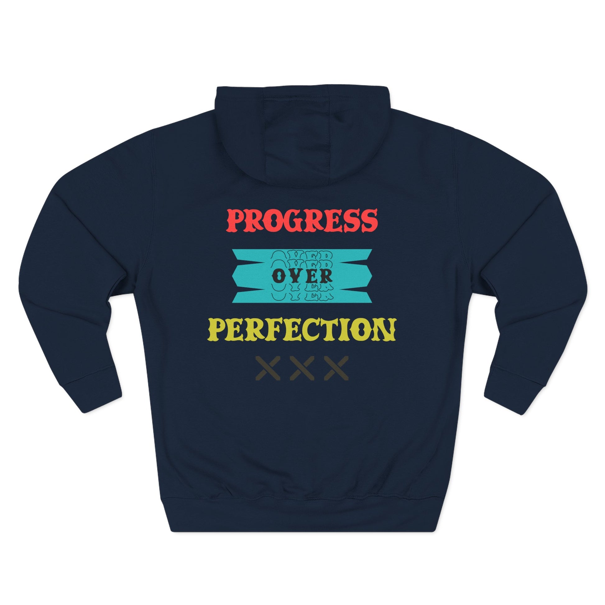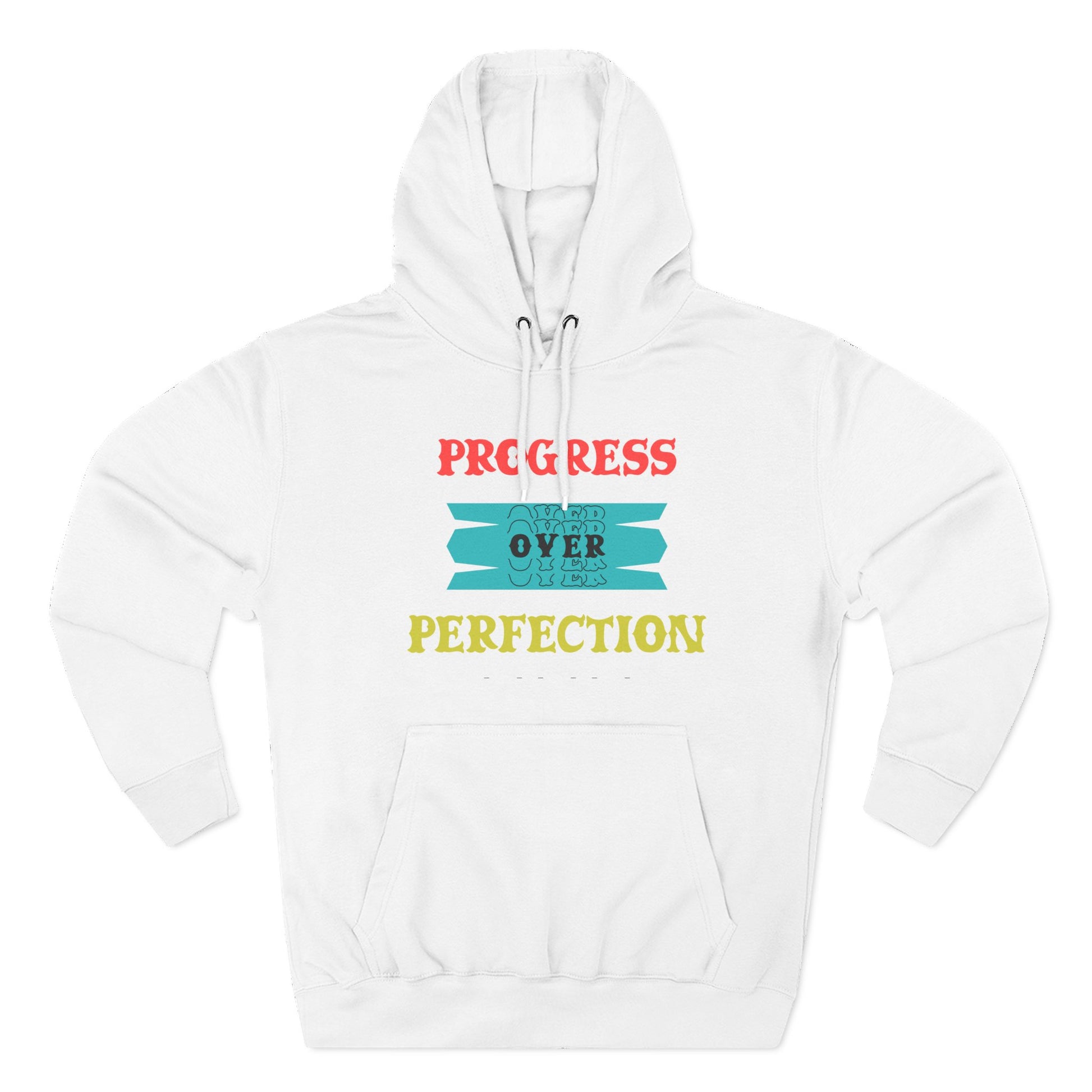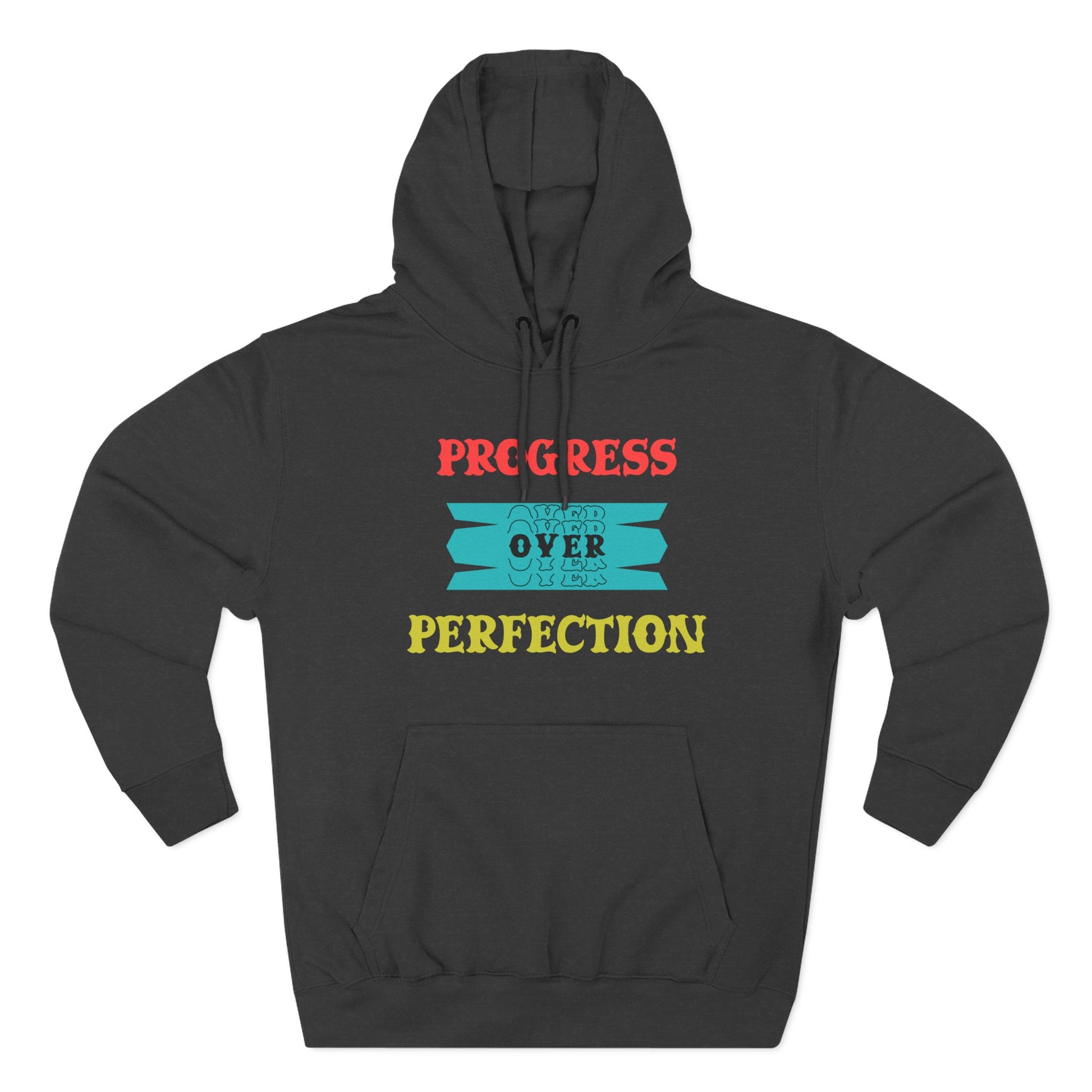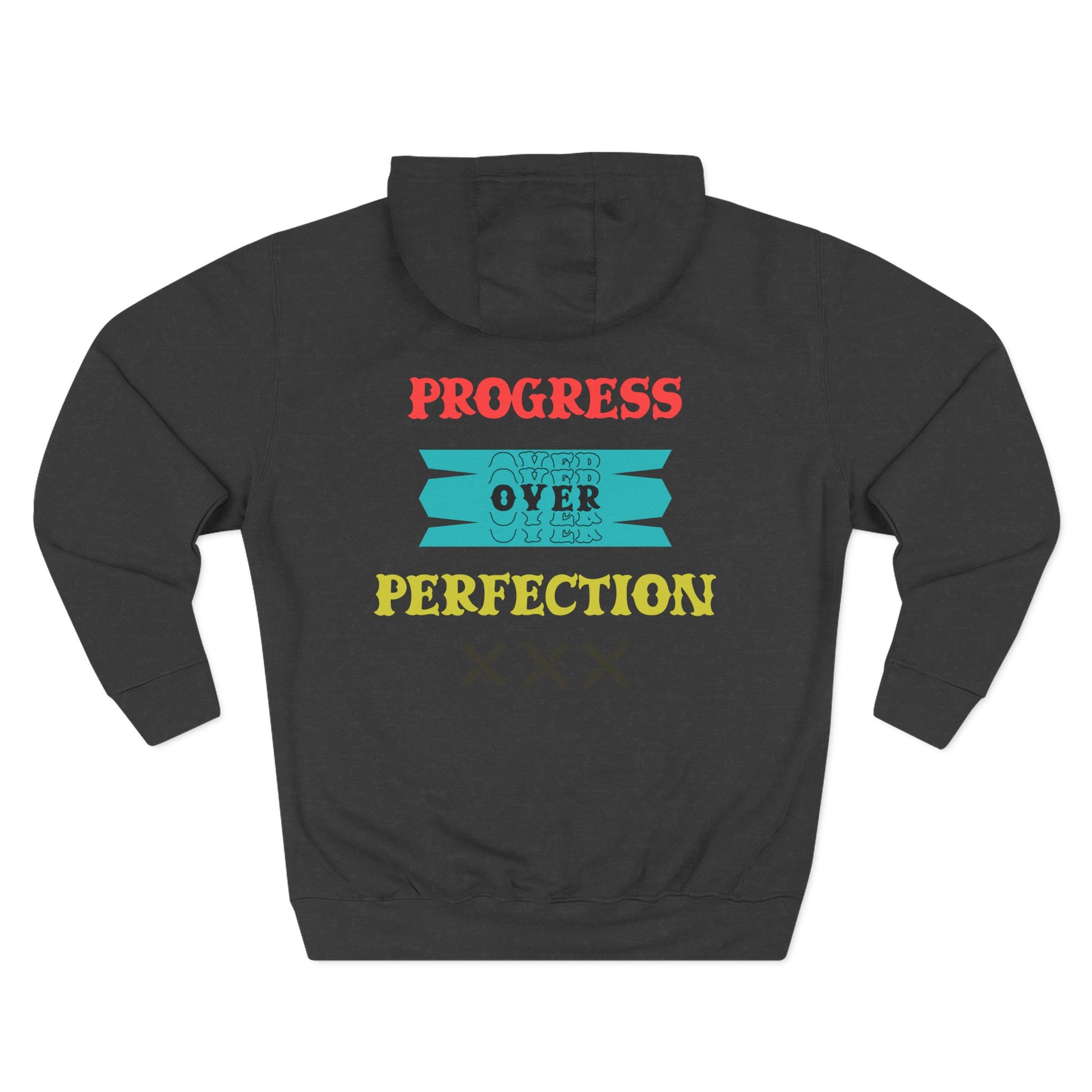 A cozy, three-panel fleece hoodie that reads “Progress Over Perfection” in bright, hand-painted lettering. The mid-weight fleece feels soft against skin and holds shape through wash and wear, while a roomy kangaroo pocket and adjustable hood add everyday comfort. Subtle embroidered options on the chest let you add a small, textured detail, while the vibrant front-and-back print makes this sweatshirt a wearable reminder to keep moving forward. It settles into your routines — morning walks, creative sessions, or coffee-shop afternoons — and wears like a quiet encouragement when you need it most.
