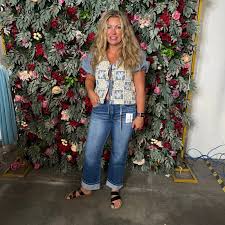 RISEN Full Size Mid Rise Fit Crop Wide With Printed Cuff Jeans Plus Size