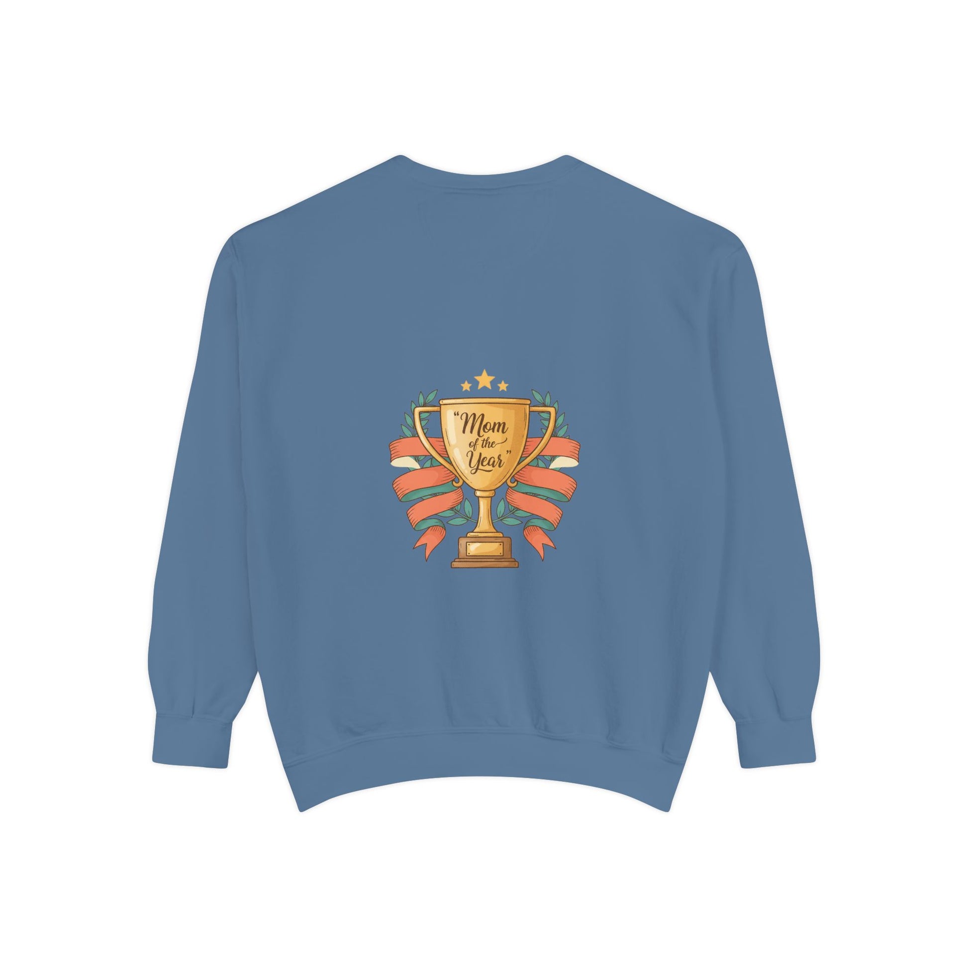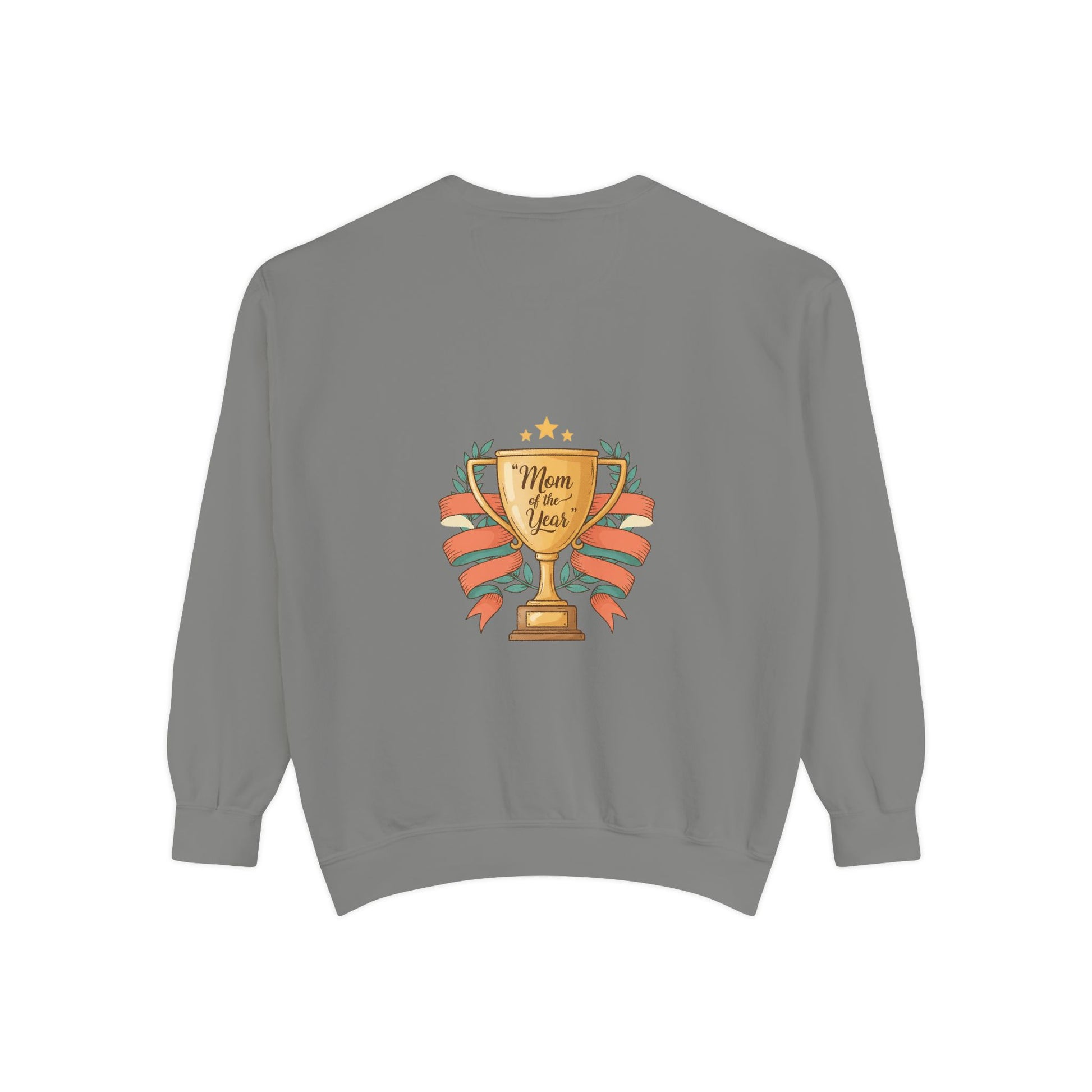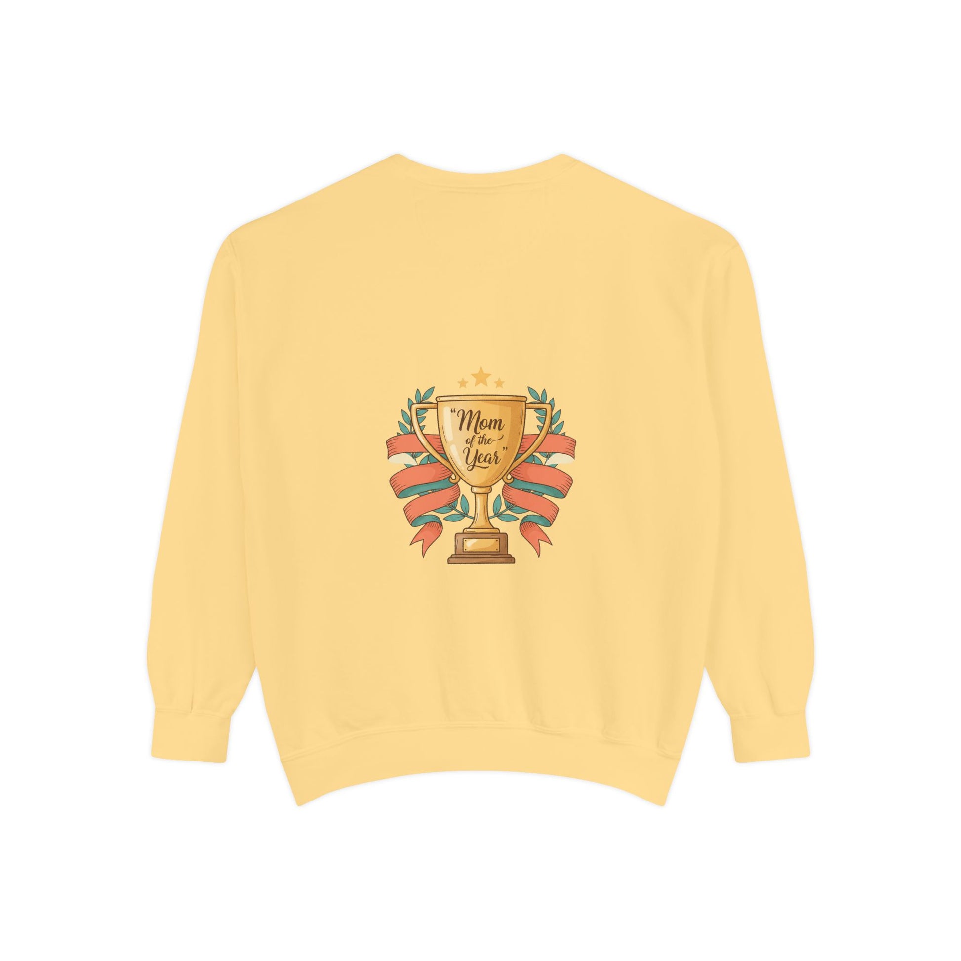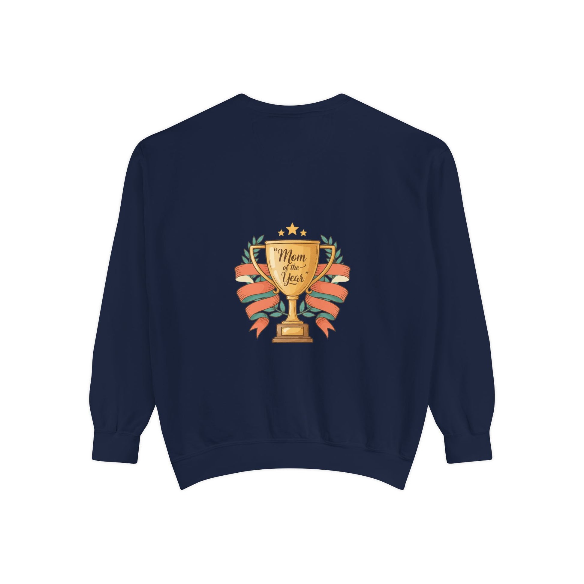 This relaxed-fit garment-dyed sweatshirt carries a handcrafted, vintage-inspired trophy illustration centered on the chest — a warm nod to someone who’s cherished and celebrated. The design’s muted golds, soft greens, and ribbon accents feel like an old-school award, softened by hand-drawn lines and watercolor texture. Wear it on slow mornings with coffee, at casual family gatherings, or when you want to give a quiet, wearable salute to someone who’s been there. The medium-heavy fabric drapes comfortably, the ribbed collar and cuffs keep shape over time, and subtle back neck detailing adds a small, thoughtful touch for those who notice craftsmanship.