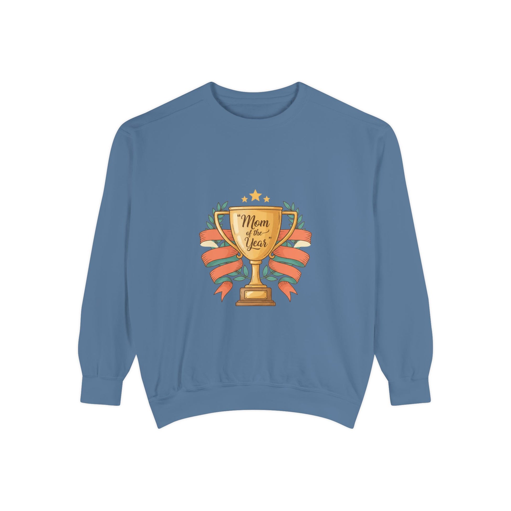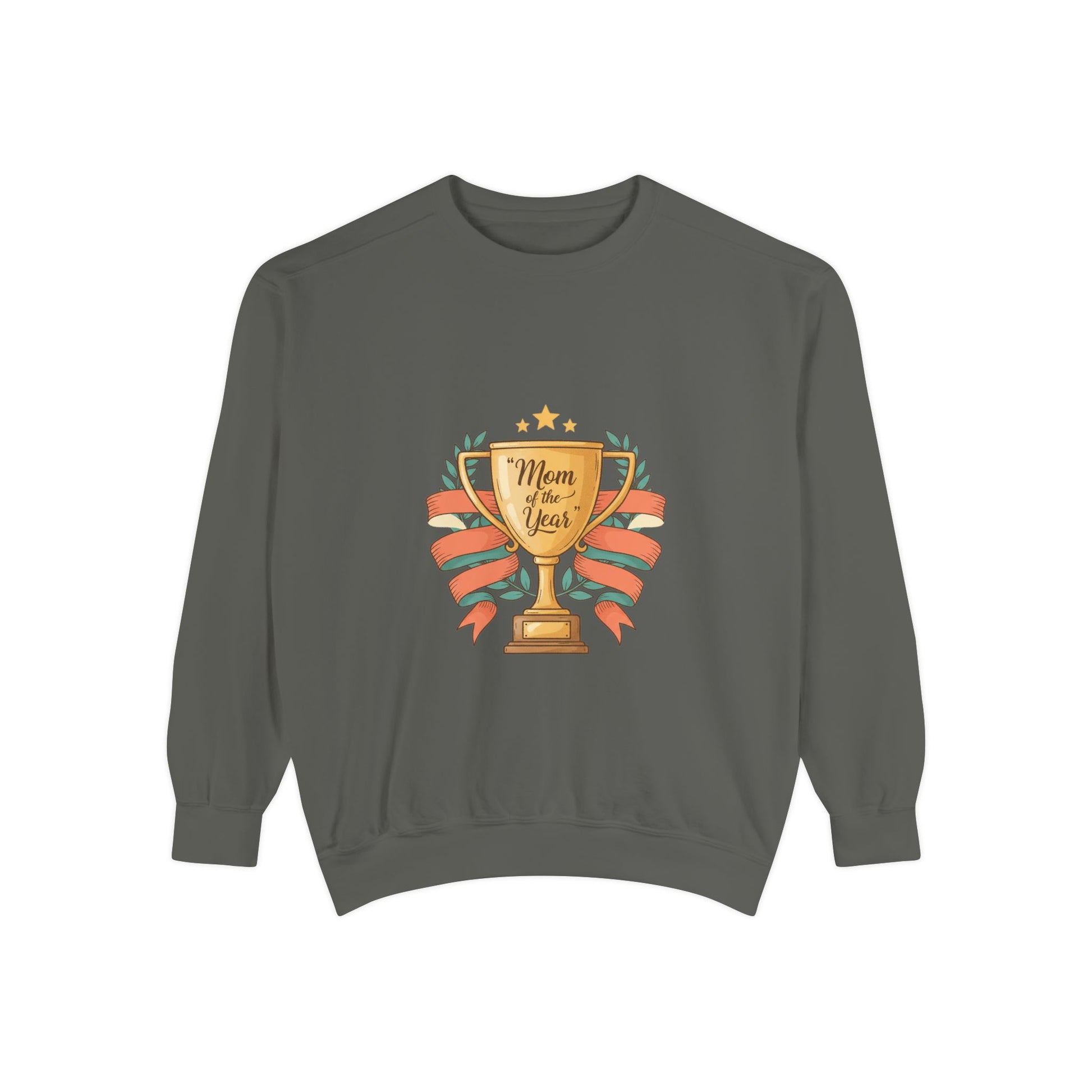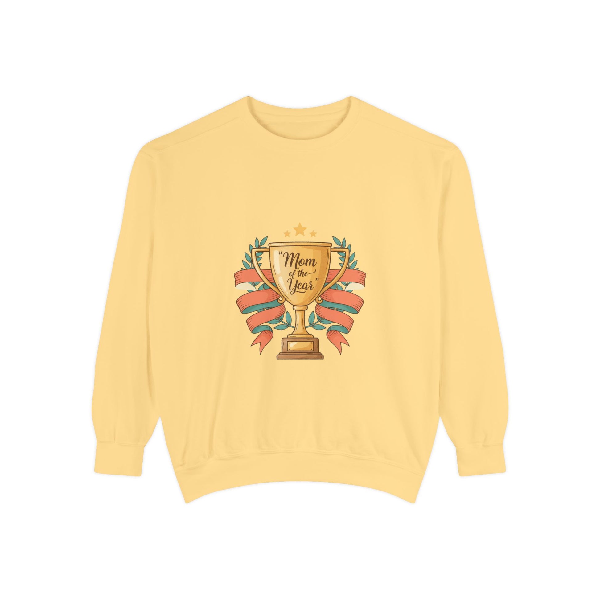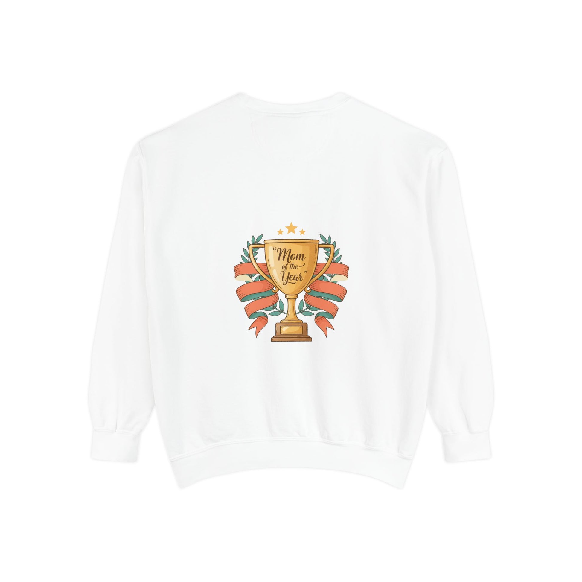 This relaxed-fit garment-dyed sweatshirt carries a handcrafted, vintage-inspired trophy illustration centered on the chest — a warm nod to someone who’s cherished and celebrated. The design’s muted golds, soft greens, and ribbon accents feel like an old-school award, softened by hand-drawn lines and watercolor texture. Wear it on slow mornings with coffee, at casual family gatherings, or when you want to give a quiet, wearable salute to someone who’s been there. The medium-heavy fabric drapes comfortably, the ribbed collar and cuffs keep shape over time, and subtle back neck detailing adds a small, thoughtful touch for those who notice craftsmanship.